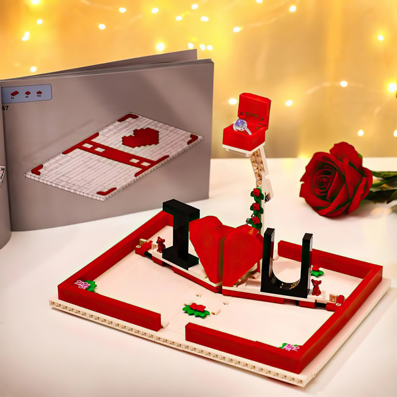 DIY Pacote de Presente de Joias para Anéis Eu Te Amo Compatível com Blocos de Construção Desenho Animado para Montar