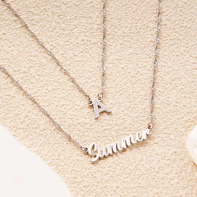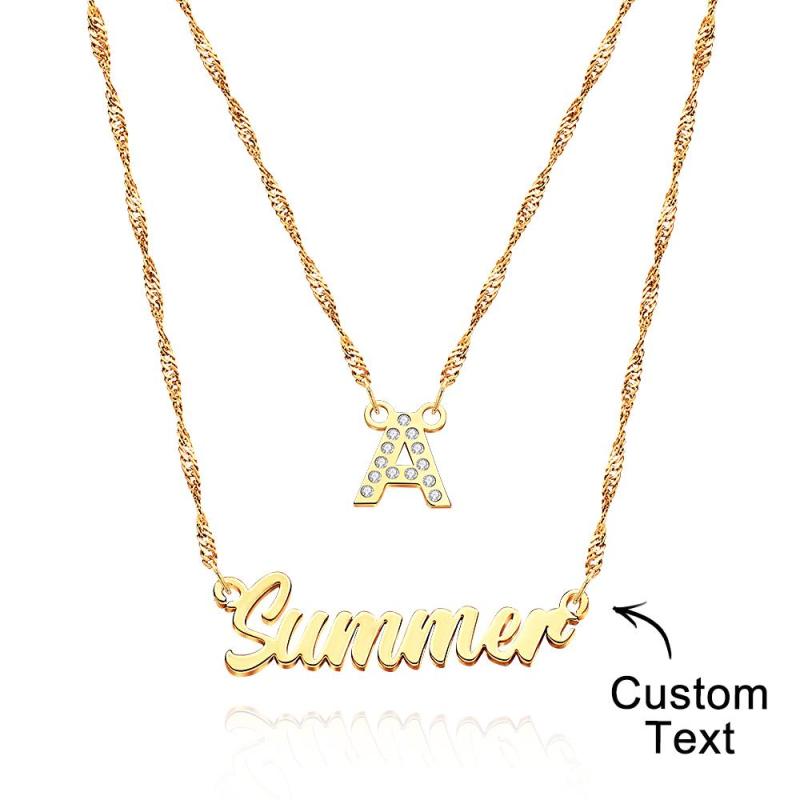 Colar Com Nome De Corrente Dupla, Colar Em Camadas Com Inicial De Ouro Personalizada, Colar Com Nome De Letra Personalizado, Presente Para Ela
