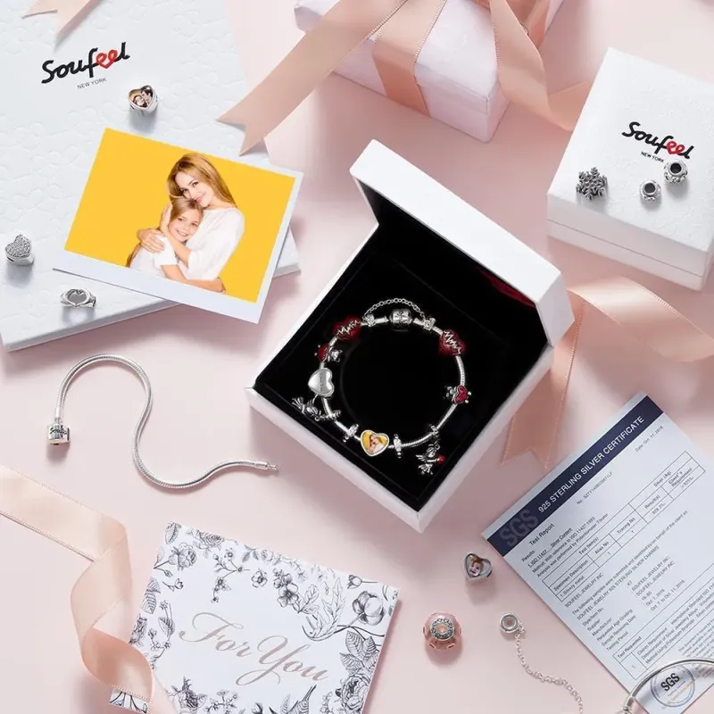 Caixa de colar Soufeel com saco de embalagem e pano de polimento