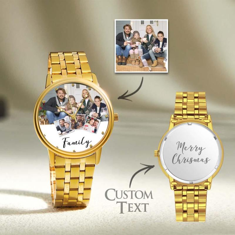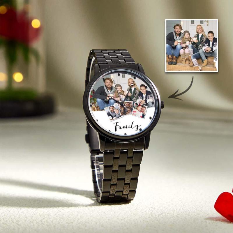 Pulseira De Liga Preta Masculina Gravada Personalizada Com Foto Relógio Presentes De Natal Para Minha Família