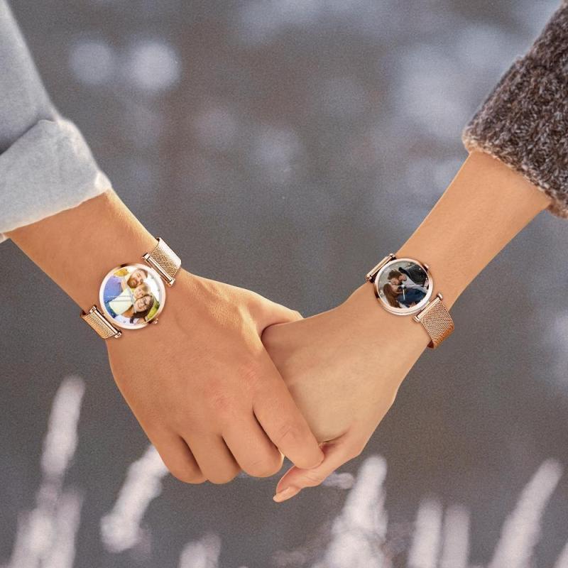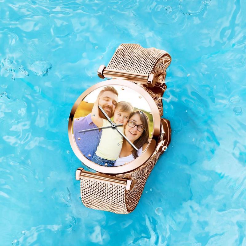 Relógio Gravável com Foto Correia de Pulseira de Liga Ouro Rosa 41mm Masculino