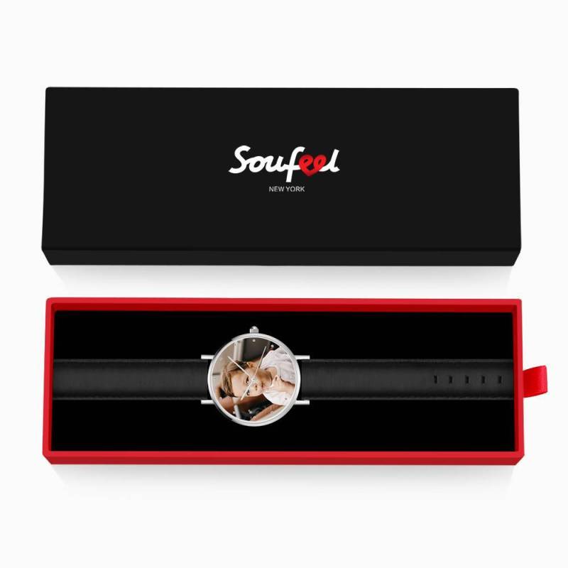 Relógio Gravável com Foto, Presente de Lembrança Pulseira de Couro Preto 40mm - Unissex