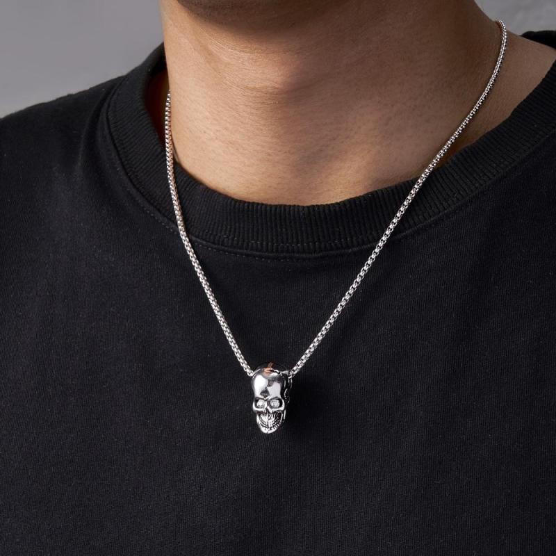 Este colar de caveira gótica é atemporal e nunca sai da moda. Skull representa um novo começo e também pode ser entendido como uma mudança de destino e uma nova vida. Este colar de caveira é uma peça única e ousada para você ou o presente perfeito para um amigo ou ente querido.