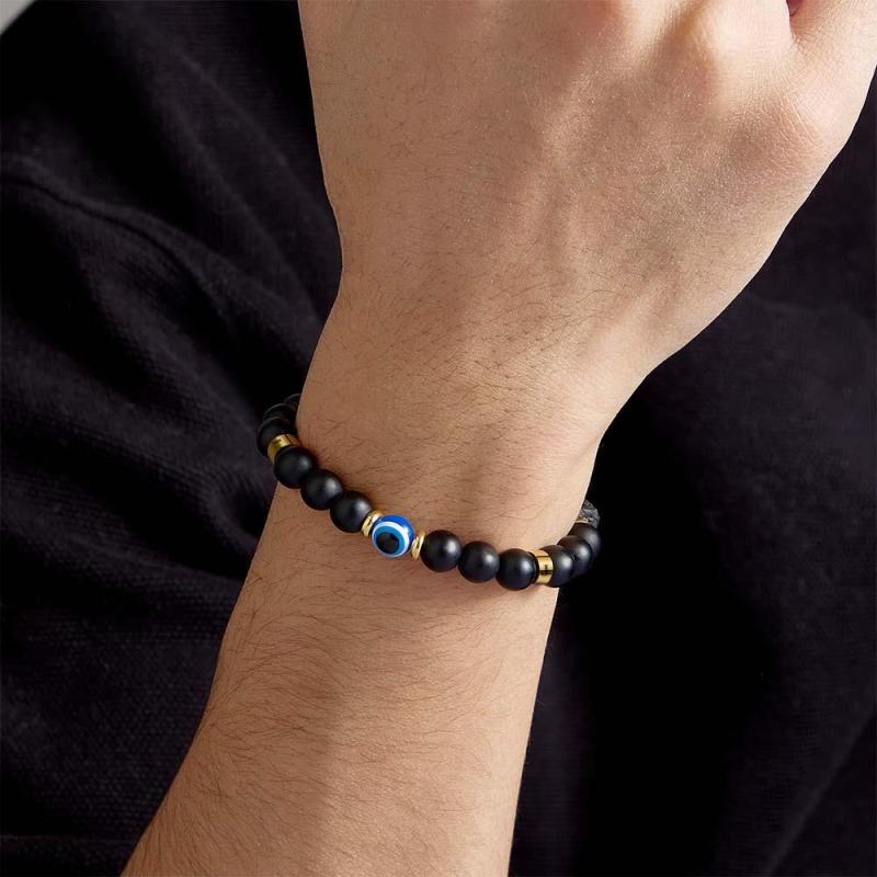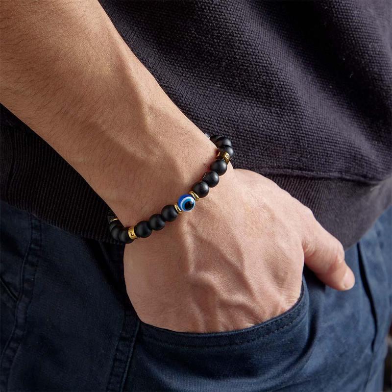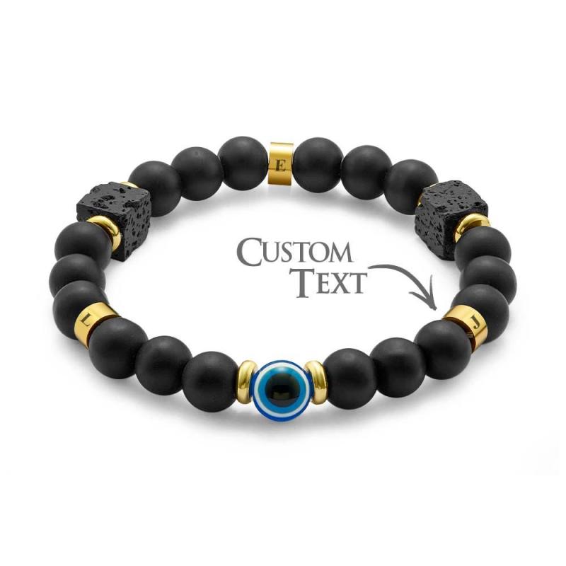 Pulseira Amuleto Gravada Personalizada Com Pedra De Lava E Pulseira De Contas De Ônix Para Homens