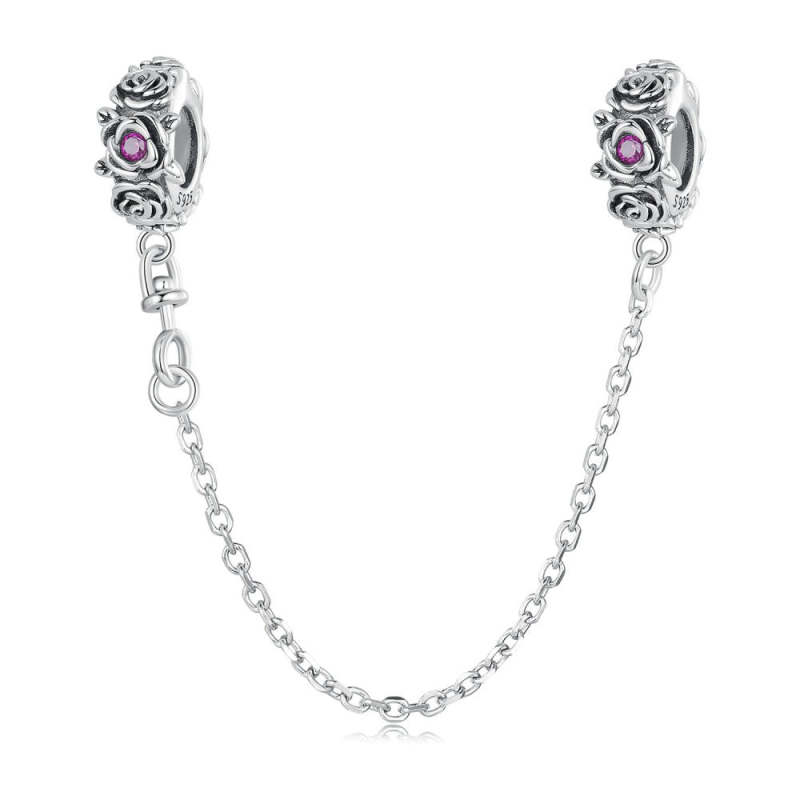 Corrente de charme de segurança rosa fashion prata