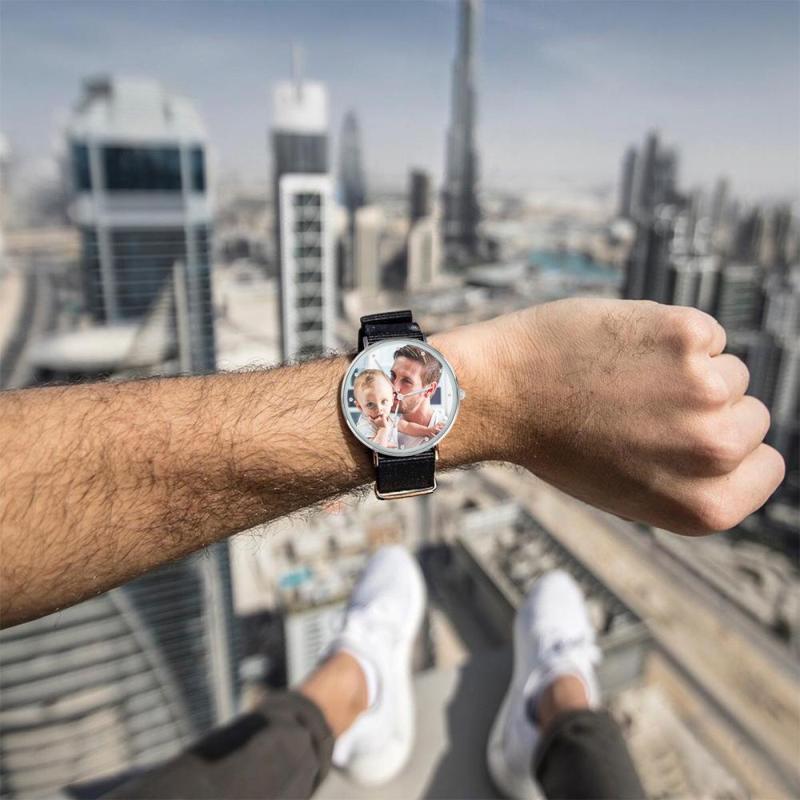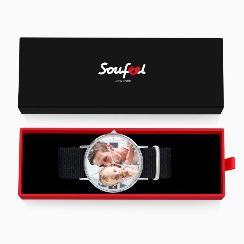 Surpreenda o seu amado com um relógio de fotos personalizado, que é feito exclusivamente para se adaptar a qualquer personalidade. A imagem do design é impressa diretamente no interior da superfície do relógio. Um relógio fotográfico personalizado é sempre um grande presente e nunca sai de moda. Nós podemos personalizar o verso do relógio com uma mensagem, cuidadosamente gravado, para sempre se lembra de sua mensagem. Este relógio é a nossa obra-prima de assinatura, a fusão perfeita do minimalismo e sofisticação. Vestido para cima ou para baixo, é certo para pontuar o olhar e vai fazer um presente perfeito para seus entes queridos, ou até mesmo um deleite para si mesmo! Soufeel tem uma tonelada de opções de jóias personalizadas que são preços razoáveis e fazem para grandes presentes para todos os tipos de ocasiões como aniversários, feriados, dia dos pais. Presente do Pai - Relógio Gravável Personalizado, Personalize Seu Relógio com Foto com Pulseira Preta.