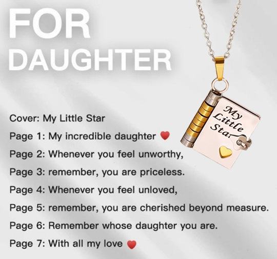 Comemore o crescimento de uma criança com um delicado colar em formato de livro que captura pequenos momentos em um medalhão brilhante. Ao abrir, revela uma carta carinhosa escrita à mão para pessoas importantes, tornando-se uma lembrança atemporal para pessoas importantes e um presente sincero para a família. Feito com carinho, este colar combina uma delicada corrente com um pequeno pingente em forma de livro que pode ser aberto para revelar mensagens ou memórias, preservando o amor e o incentivo por muitos anos. Perfeito para aniversários, feriados ou momentos 'só porque sim', é mais do que uma joia; é uma pequena história comemorativa que você pode guardar no coração.