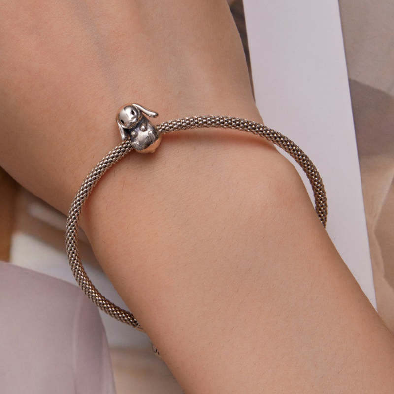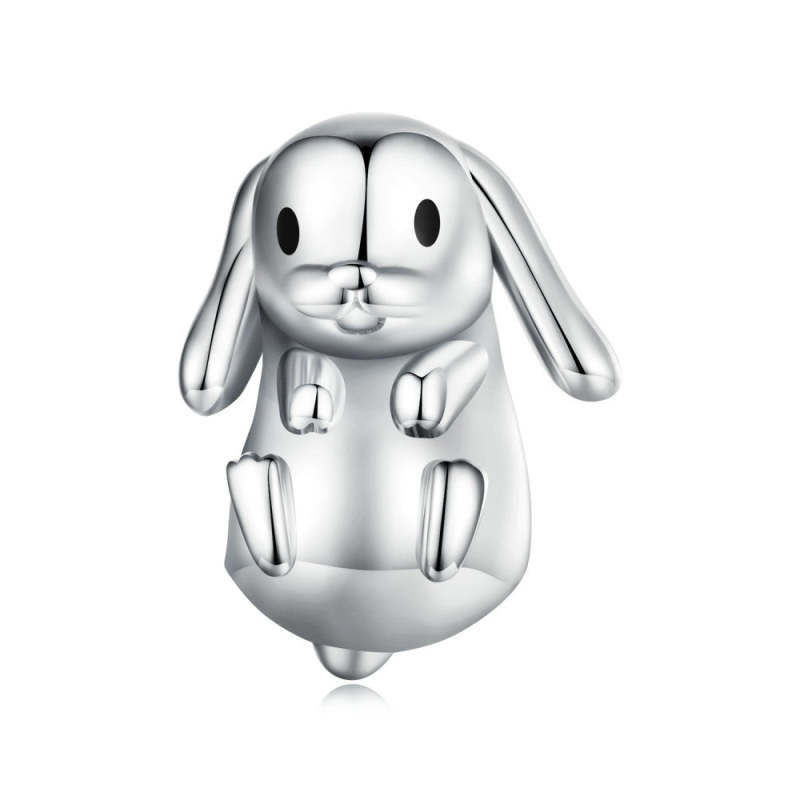 Presentes de Páscoa prateados com pingente de coelho com orelhas caídas