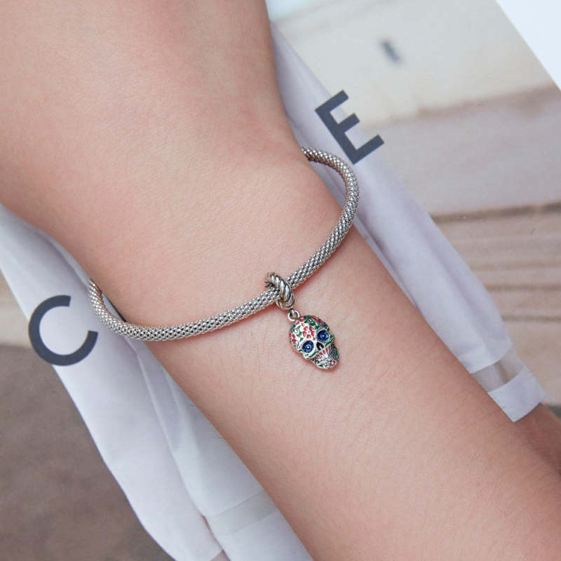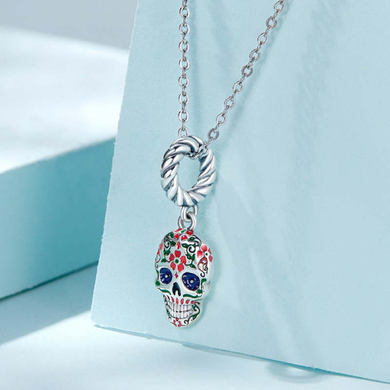 Pendente de cabeça de caveira de flor prateado