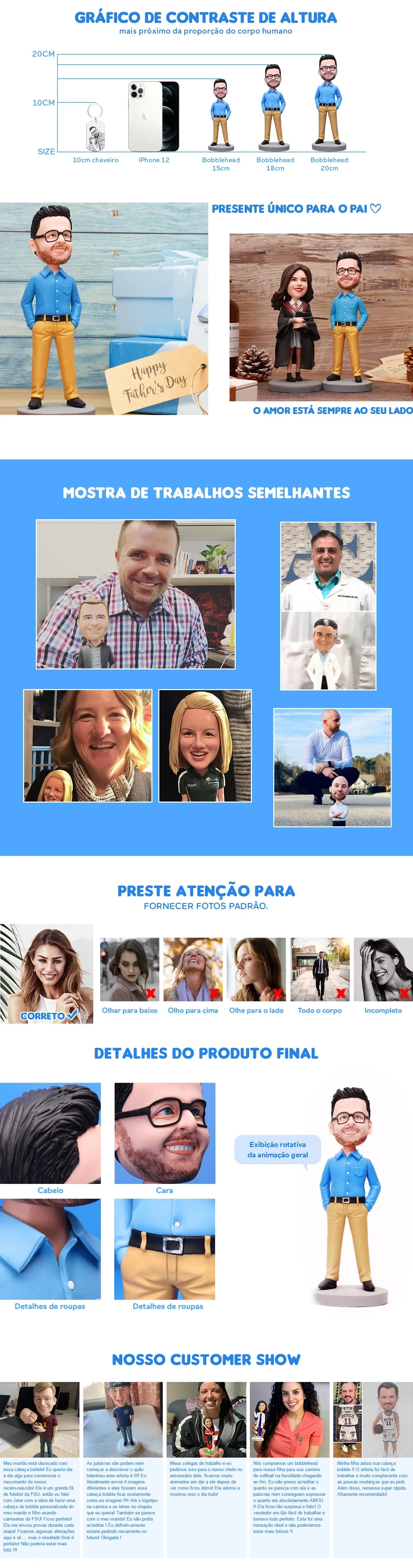 O escopo da produção não inclui as grandes decorações da imagem, como mesas, cadeiras, instrumentos musicais ou animais, etc. O tamanho é a estatura da pessoa em pé da cabeça aos pés, não é a altura real do pessoa sentada ou deitada. A cabeça estacionária pode fazer qualquer estilo de cabelo, e a cabeça bobble só pode fazer penteados curtos.