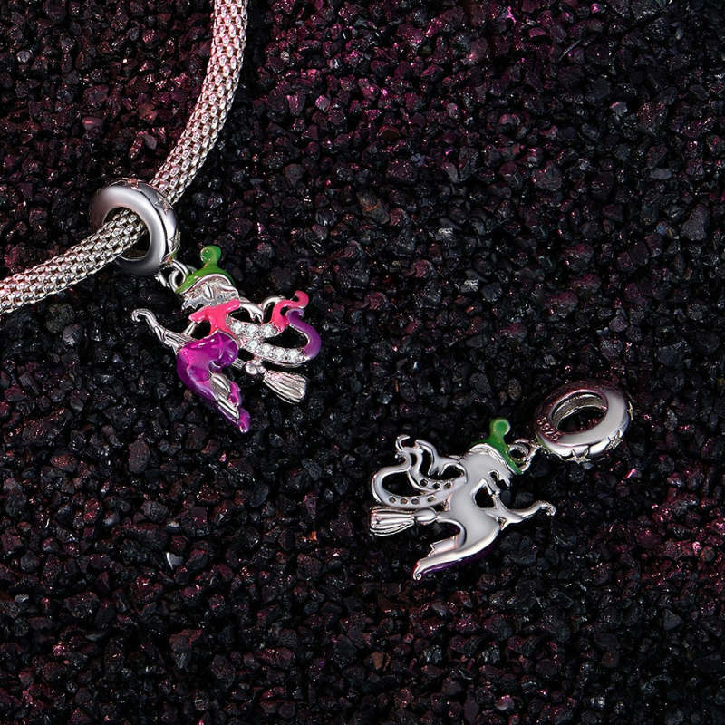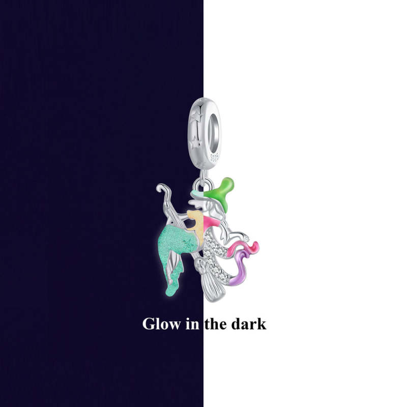 Pendente de bruxa de Halloween que brilha no escuro prateado