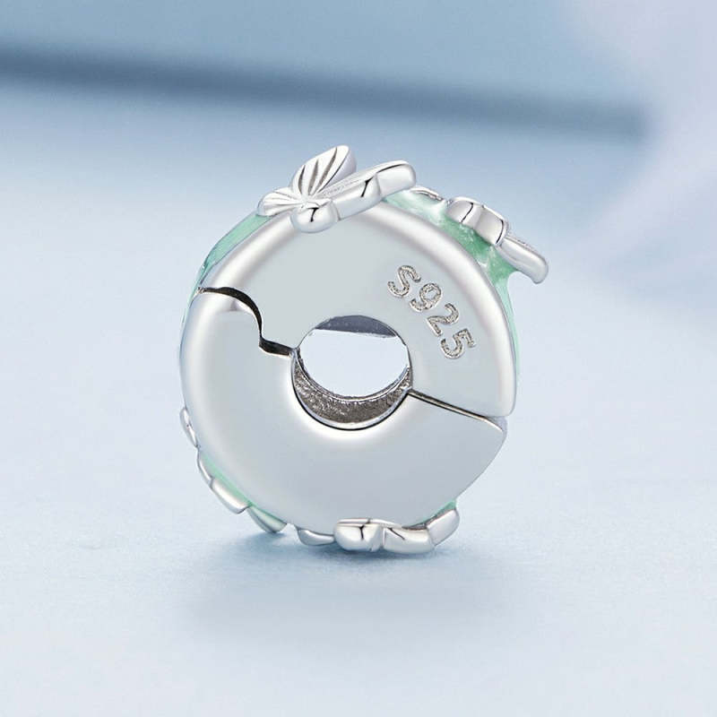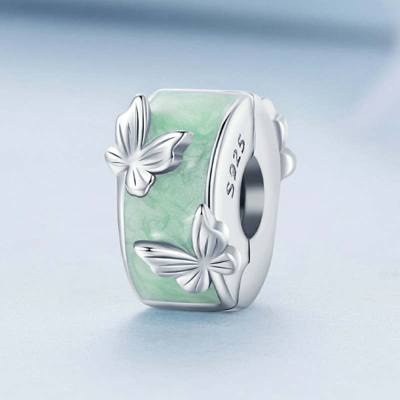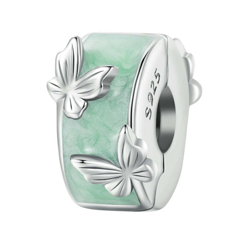 Charme Espaçador Borboletas Verdes Prata