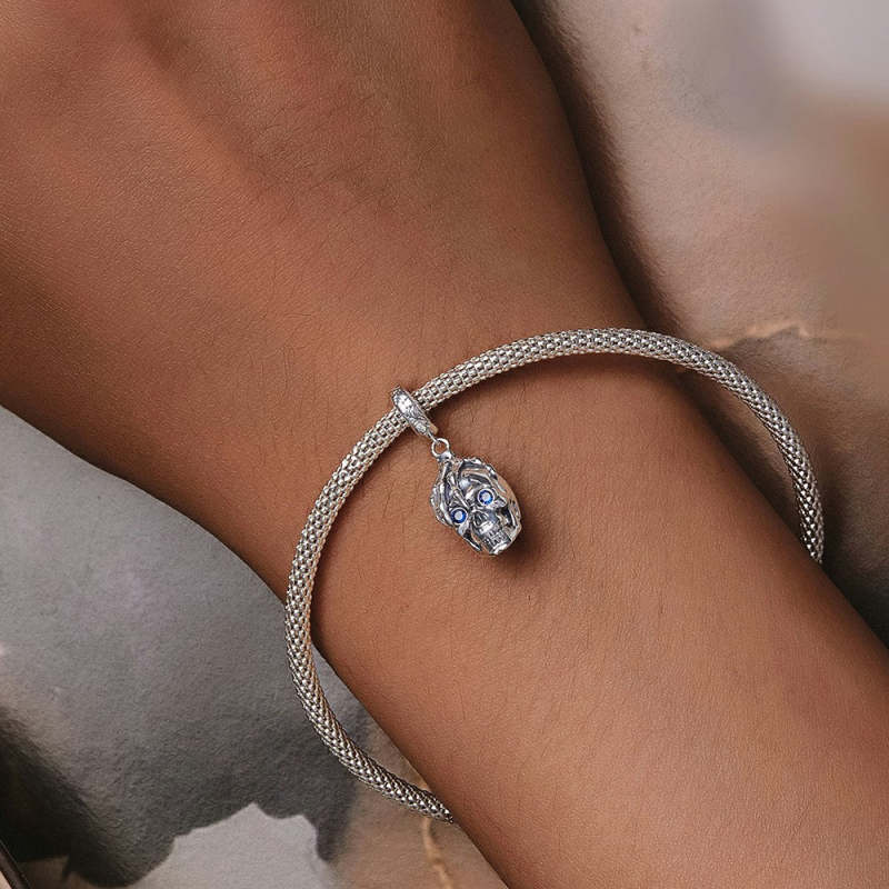 Amuleto pendurado de caveira de Halloween prateado