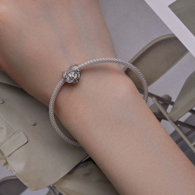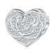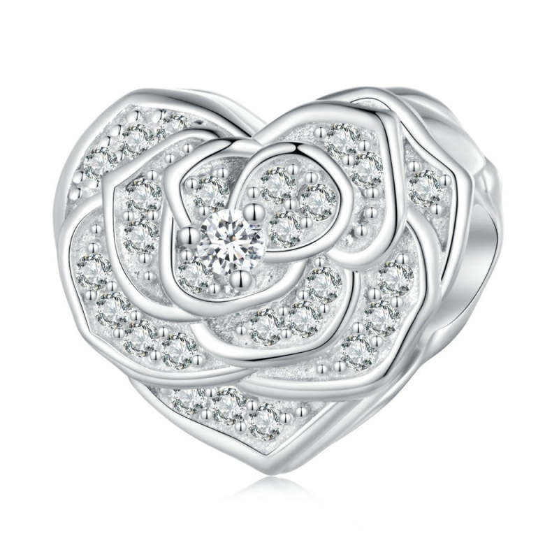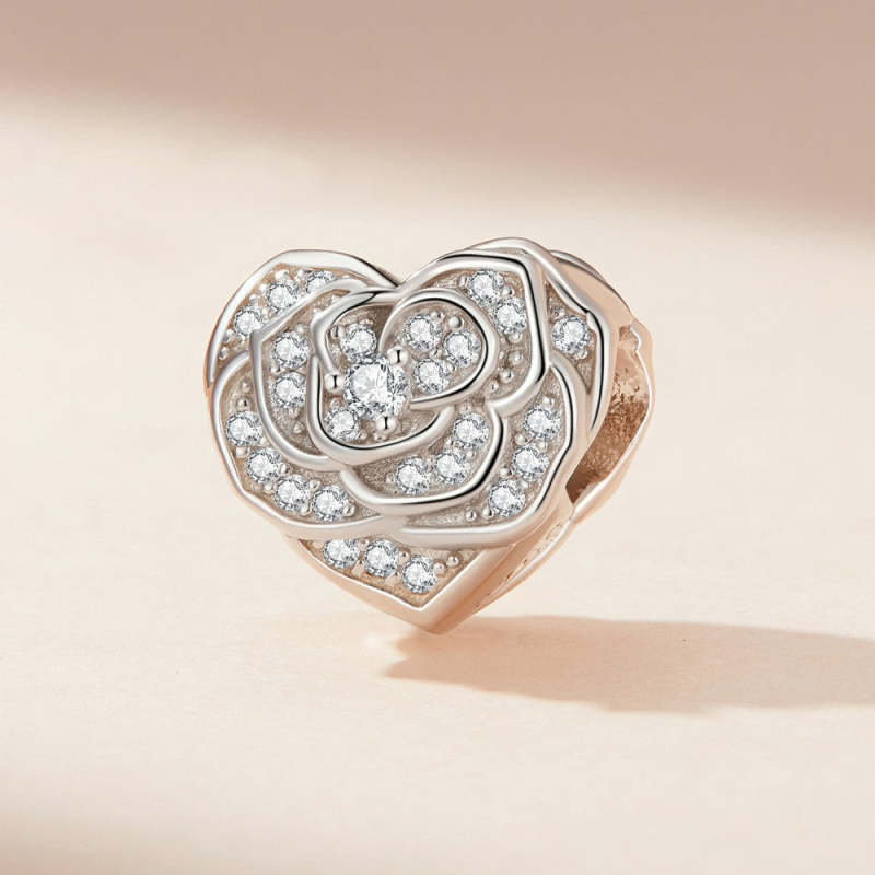 Charme Coração De Rosa Zircão Branco Prata