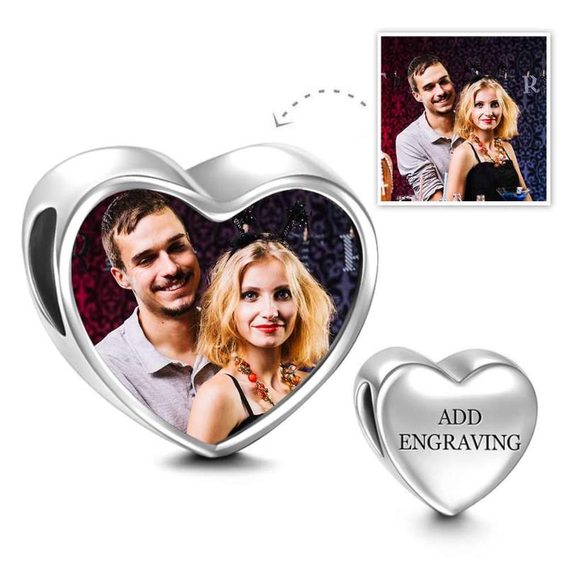 Berloque Gravável de Coração com Foto Banhado a Platina