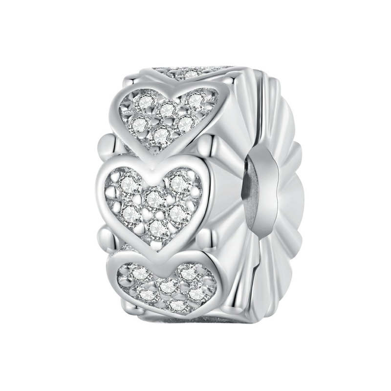 Amuleto espaçador em forma de coração prateado