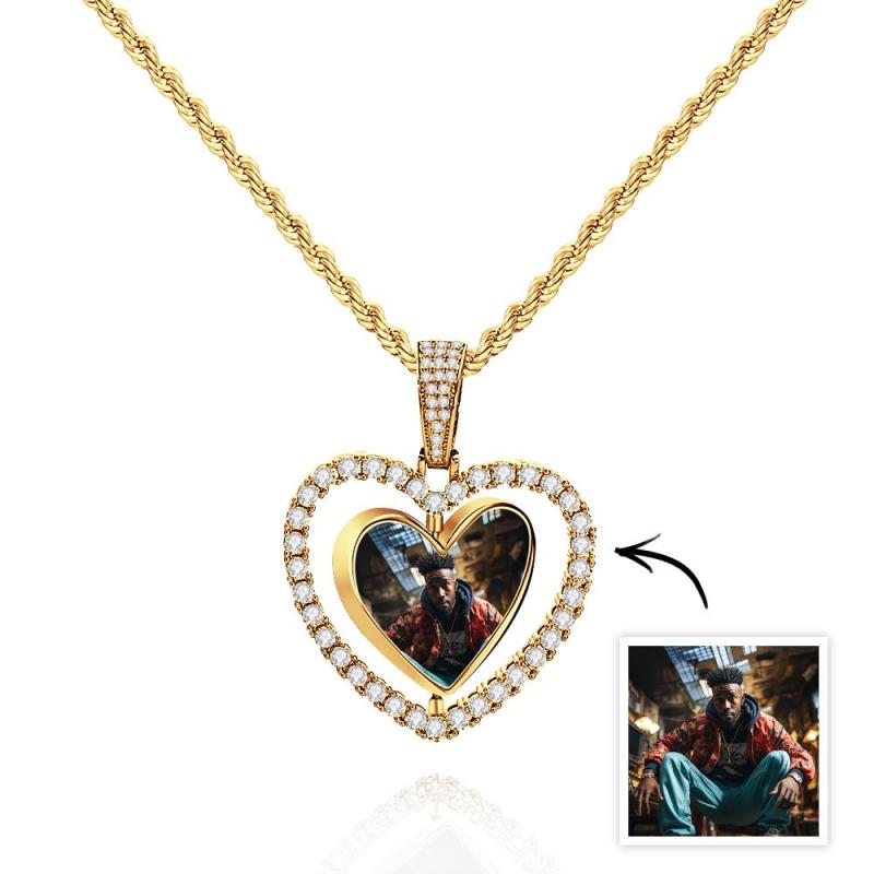Colar Com Foto De Hip Hop, Coração Rotativo, Oco, Pingente De Zircônia, Joias, Presentes Para Homens