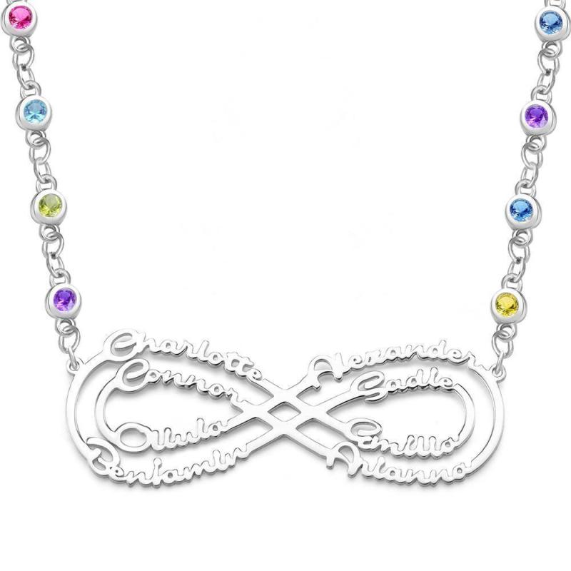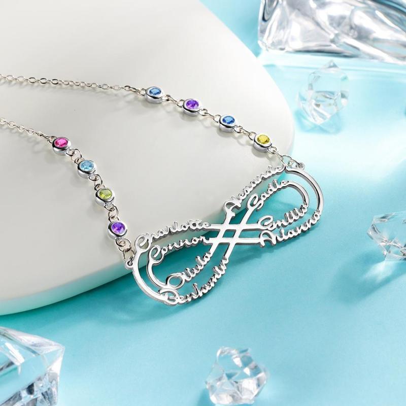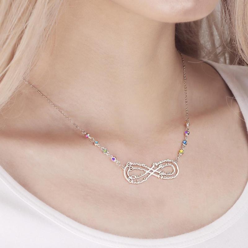 Colar Infinito com Personalizado Pedra Zodiacal Colar com Nome Prata Presentes de Aniversário