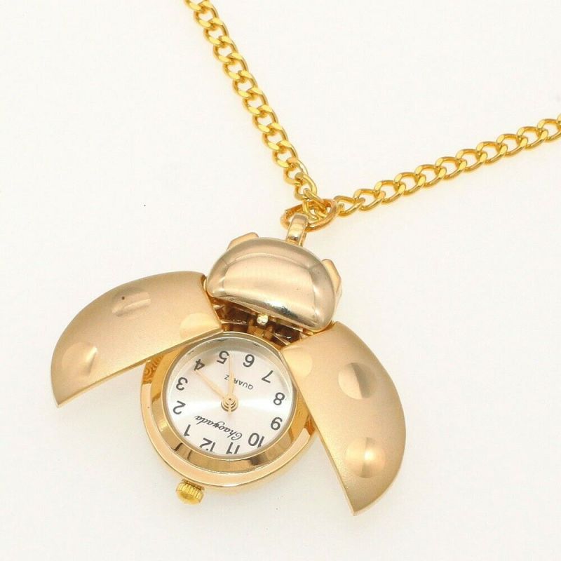 Lindamente trabalhado em um design de besouro dourado, este relógio em miniatura abre suas asas para revelar um delicado mostrador no interior - combinando função, moda e um toque de fantasia.
