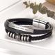 Couro PU, aço inoxidável polido (inox) e fecho magnético forte. Usamos apenas materiais de alta qualidade. Fixação segura e fácil manuseio. Com o fecho magnético de aço inoxidável, sua pulseira ficará bem fechada. É fácil de usar com uma mão e garante um acabamento limpo, sem elementos salientes que ficam feios ou criam pontos de pressão. Apenas confortável!