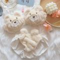 Os detalhes fofos com tema de urso (como pequenas orelhas ou acabamento felpudo) adicionam um charme divertido, combinado com um design de sutiã que oferece sustentação e flexibilidade, priorizando o conforto durante todo o dia. Feito com materiais respiráveis e que não irritam a pele, evita irritações, tornando-o ideal para uso diário ou momentos aconchegantes em casa.