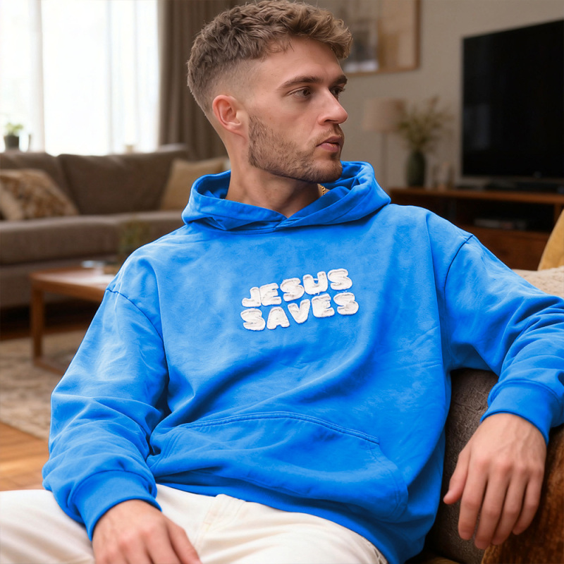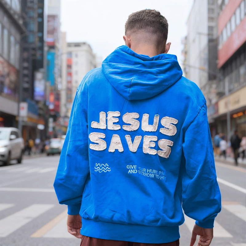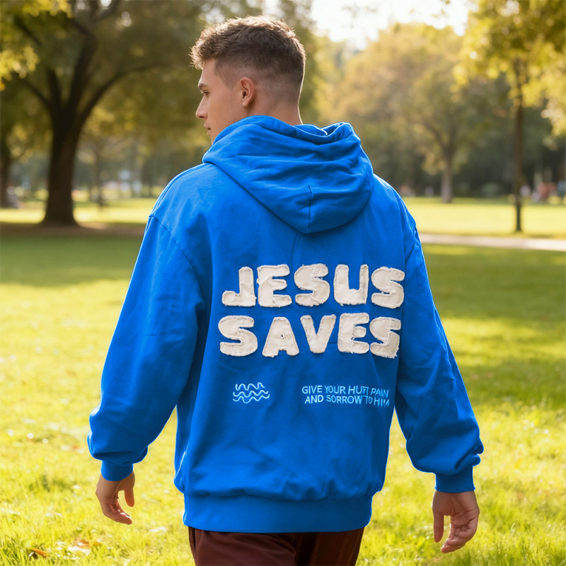Abrace o conforto e a fé com nosso Moletom com Capuz 'Jesus Salva'. Confeccionado em tecido macio e de alta qualidade, este moletom combina o estilo do dia a dia com uma poderosa mensagem de esperança e encorajamento. O design ousado 'JESUS SALVA' nas costas serve como um lembrete de força e salvação, enquanto as palavras inspiradoras 'Entregue sua dor, sofrimento e sofrimento a Ele' trazem conforto e positividade aonde quer que você vá.