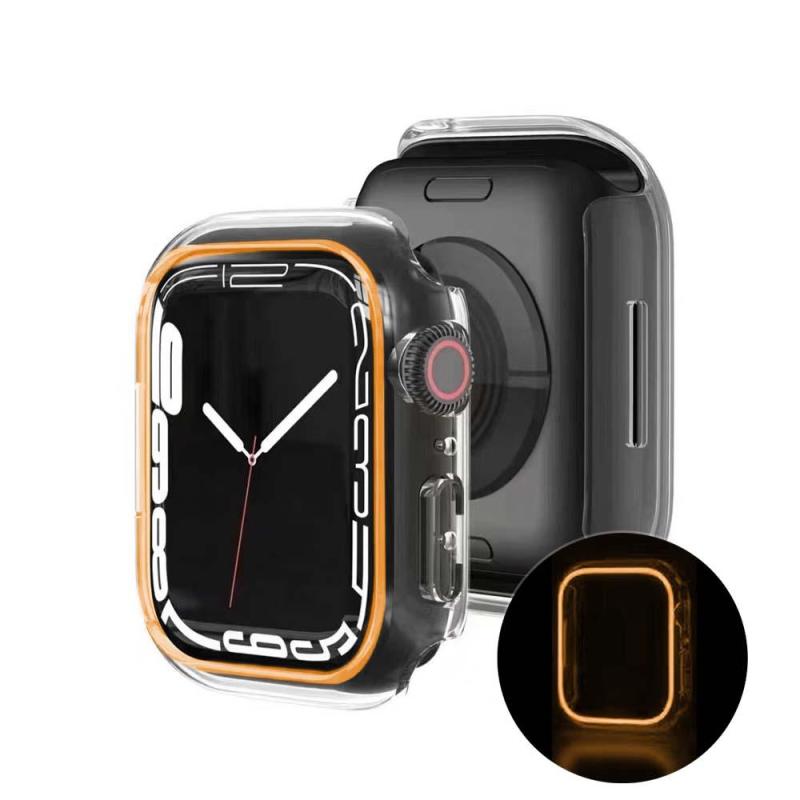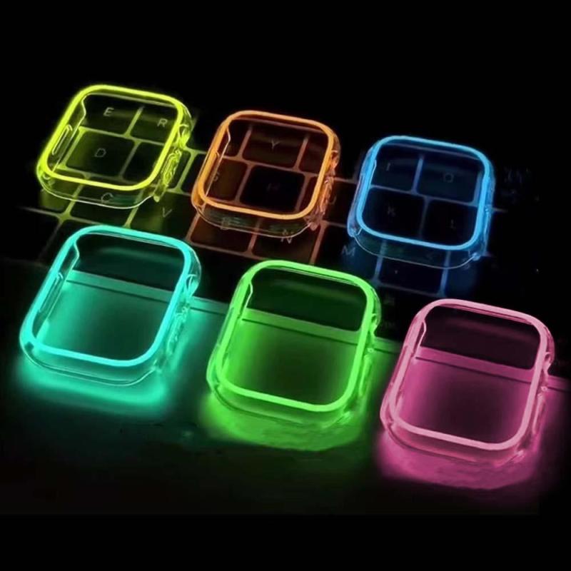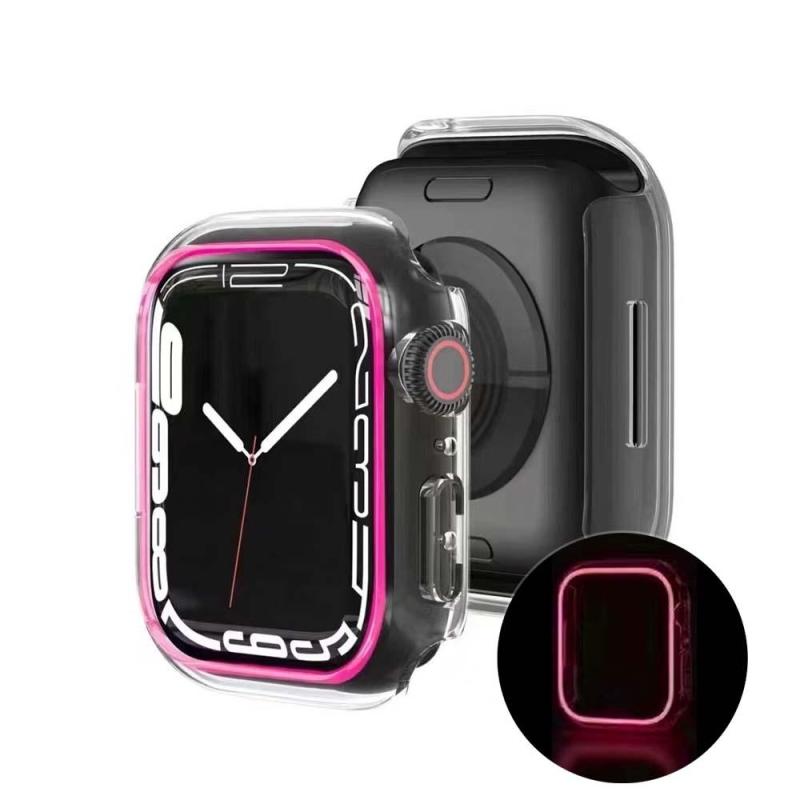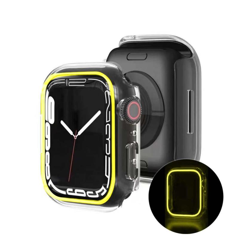 A capa luminosa para Apple Watch, esta capa brilhará em seu relógio à noite, moldura para Apple Watch, material de PC de alta qualidade, é boa para evitar que seu relógio quebre e arranhe. Tamanhos para seleção: 38MM 40MM 41MM 42MM 44MM 45MM 49MM. Compatível com a Série 4 5 6 7. Proteja seu relógio Apple contra arranhões enquanto permanece limpo para uma tela limpa e suave. Este case não cobre a tela do Apple Watch. Isso o deixa livre para manipular facilmente seu relógio.