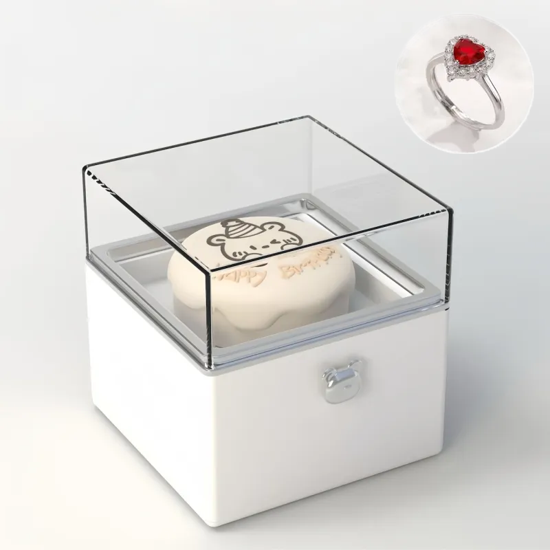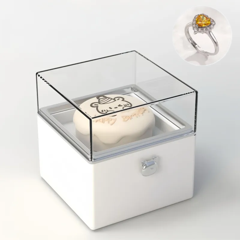 Caixa De Anel De Bolo De Urso Mágico Presente Surpresa Presente De Aniversário Com Anel De Promessa Ajustável Aberto Presente Para Amante Para Ela