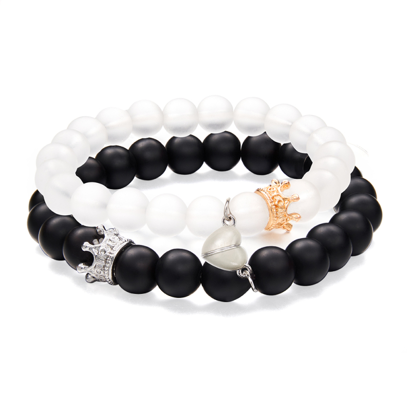 O pingente magnético de coração de amor luminoso mostrará atração mútua quando próximo. A pulseira deste casal simboliza o amor eterno e a amizade entre amantes ou amigos. A parte em formato de coração é luminosa e emite luz azul em locais escuros. A pulseira de coroa em forma de coração deste casal é feita de contas redondas de vidro fosco entrelaçadas. A rosca é elástica, permitindo que a pulseira se ajuste perfeitamente ao usuário. Fácil de combinar. Perfeito para qualquer ocasião.