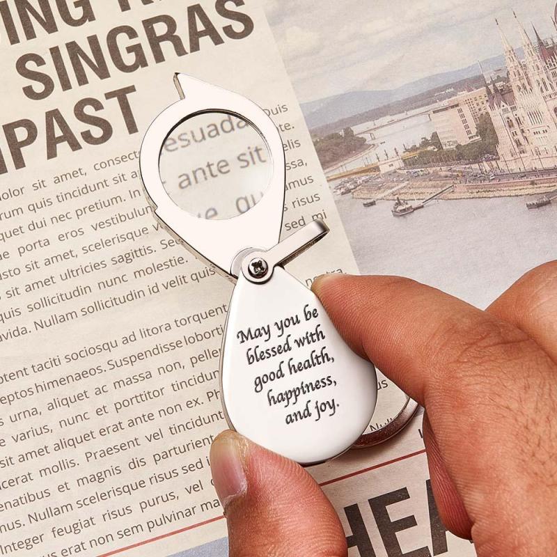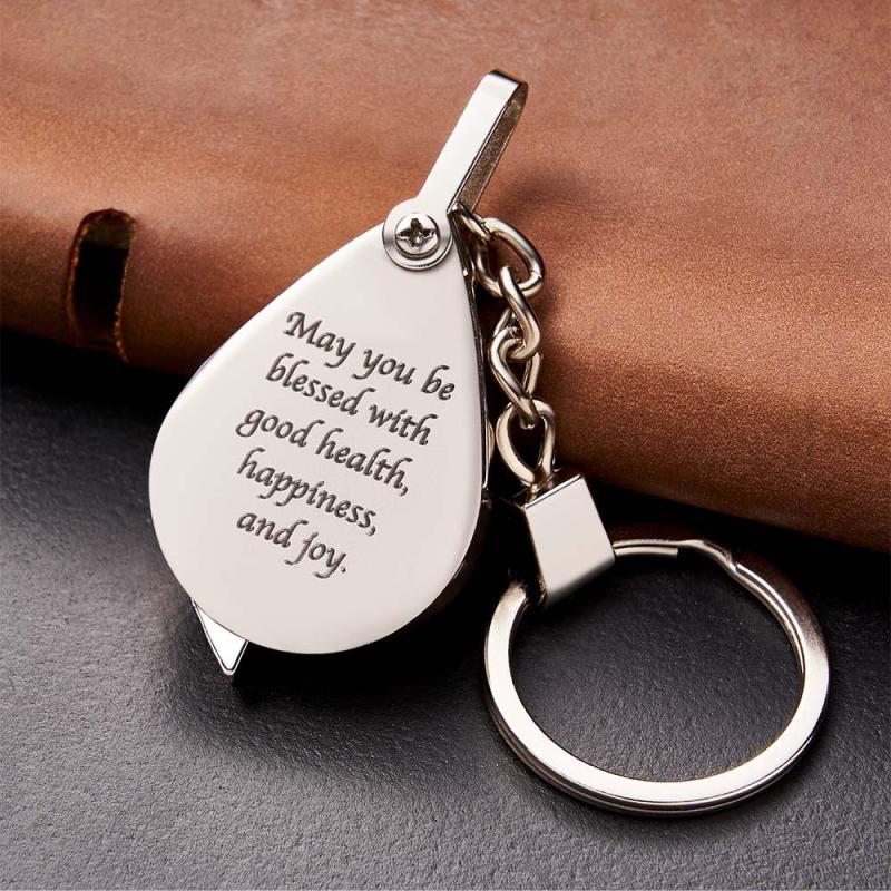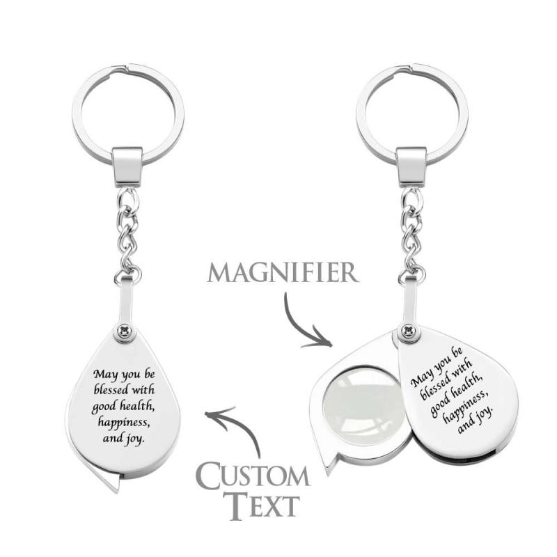 O chaveiro personalizado que você pode gravar o nome, texto, design, caligrafia em ambos os lados.É um presente muito quente para os pais , Avós com funções Magnifer e, em seguida, adicione suas palavras especiais. Será um presente de Natal perfeito para eles.
