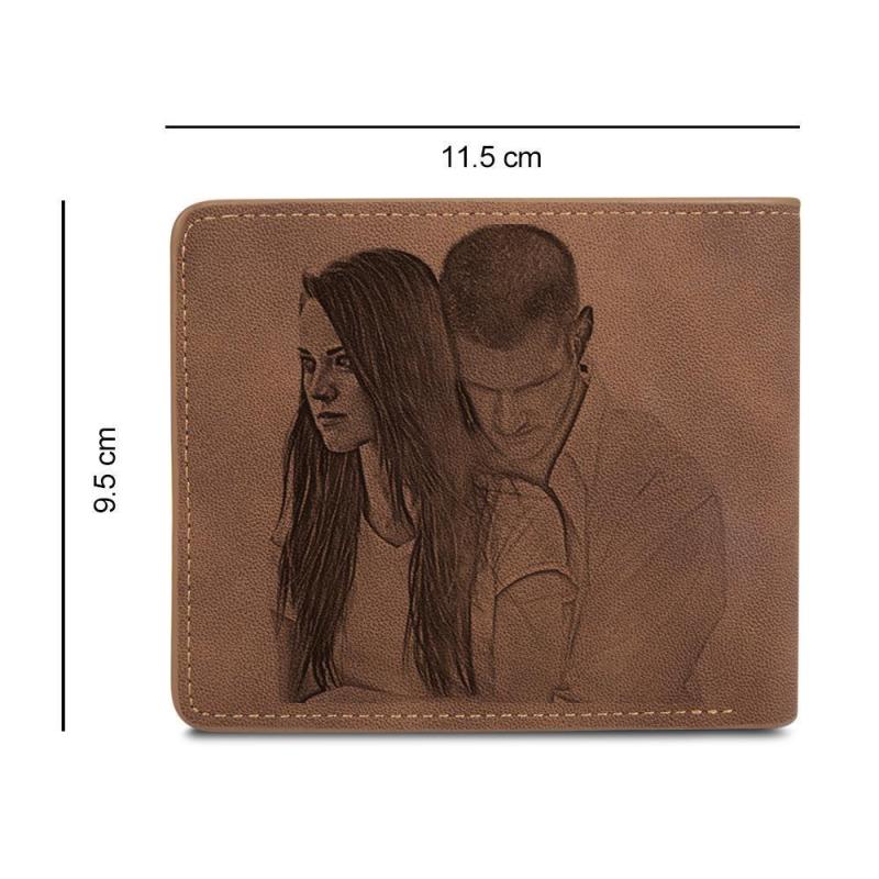 Carteira Masculina Dupla com Foto Personalizada com Inscrição com Duas Fotos - Couro Castanho