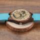 Homem Relógio Gravável de Madeira com Foto com Pulseira de Couro Azul - Sândalo