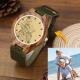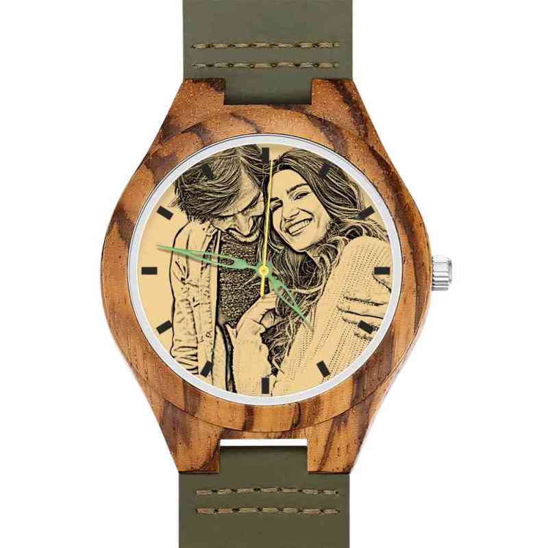 Masculino Relógio de Madeira com Foto Gravável com Pulseira de Couro Verde Escuro 45mm