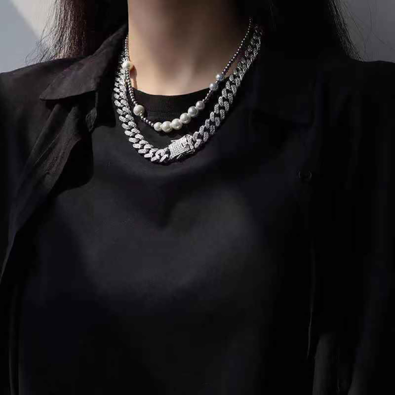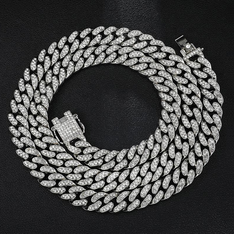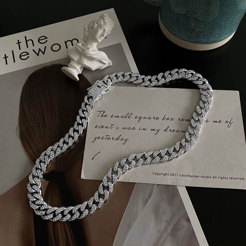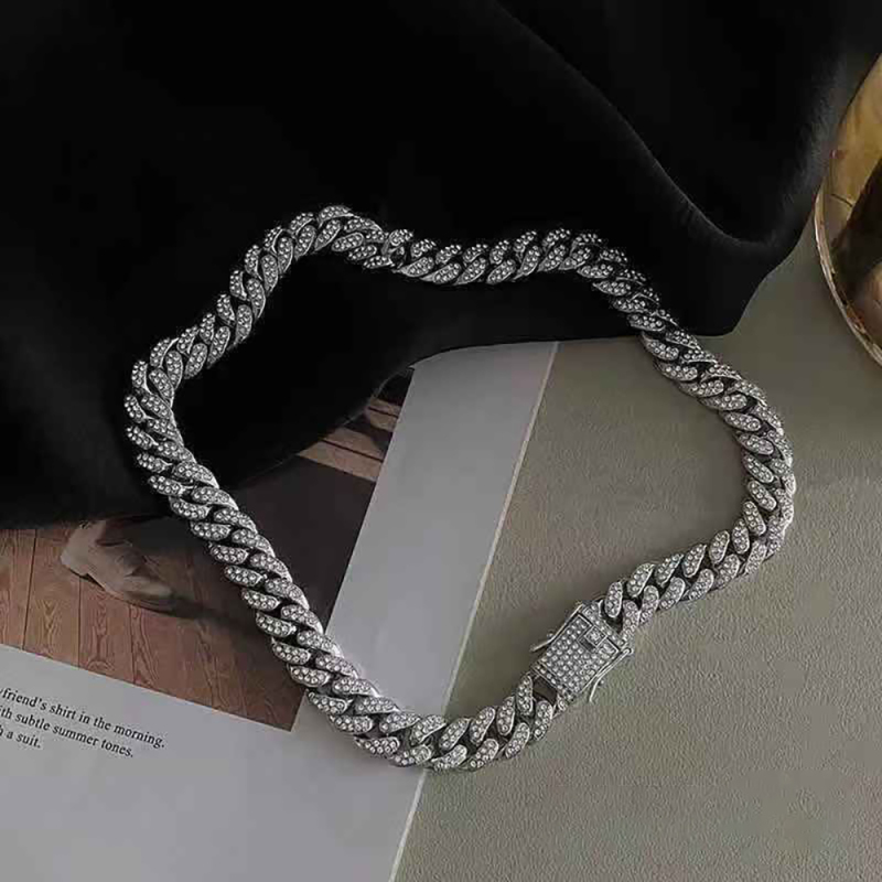 Colar Masculino Cheio De Diamantes Corrente Cubana Punk Empilhamento Corrente Presente Para Namorado
