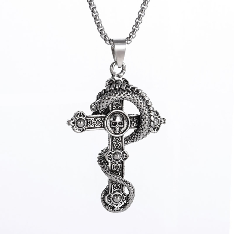 Colar Masculino Punk Colar Crânio Pandragon Cruz Pingente Colar Presente Para Namorado