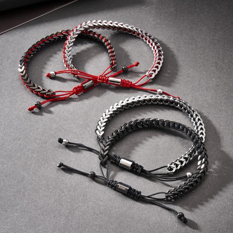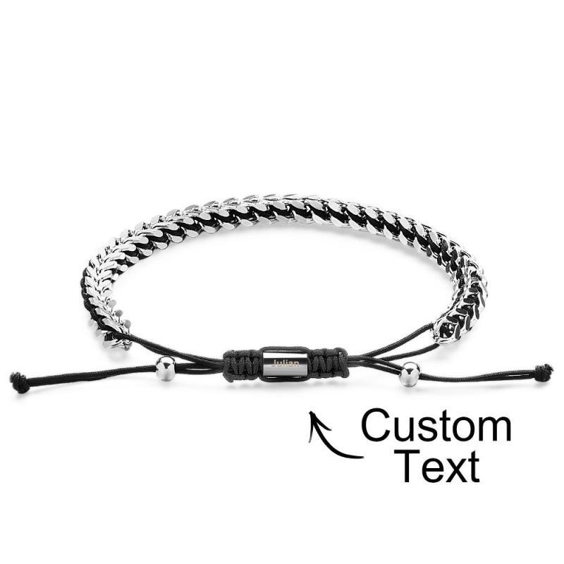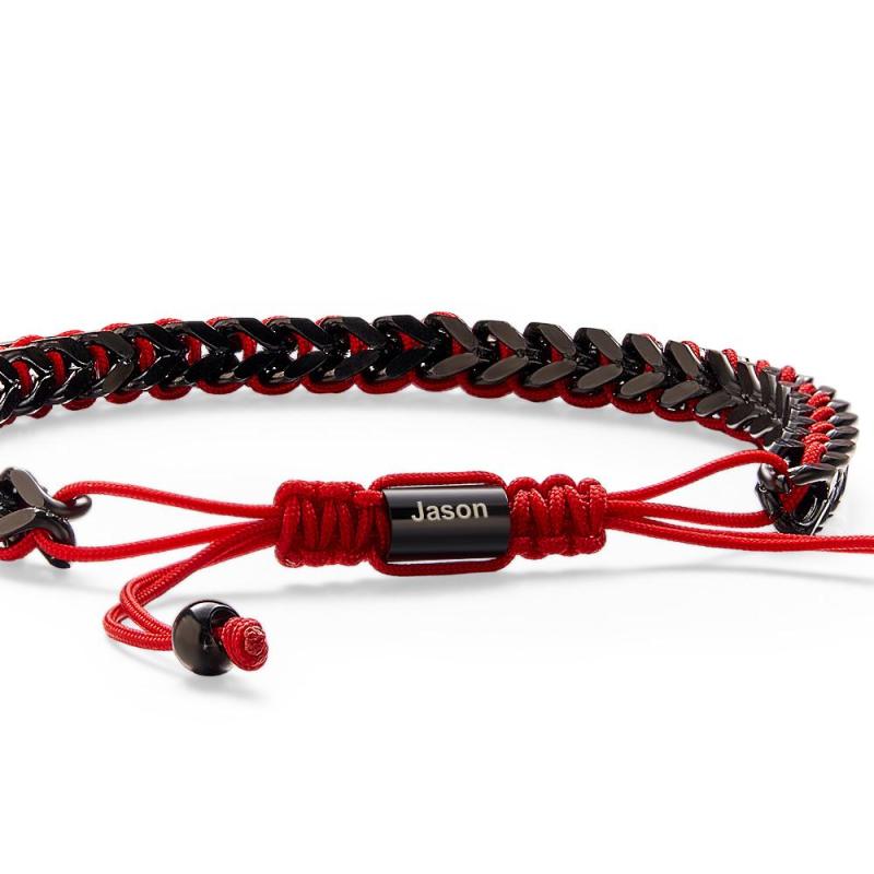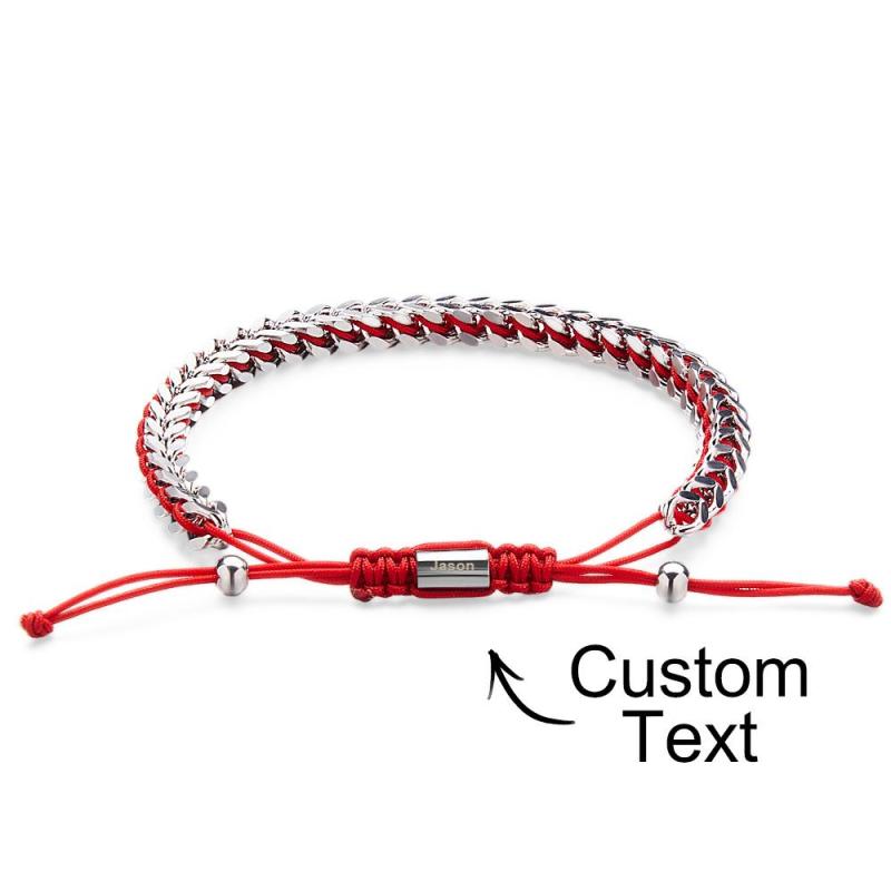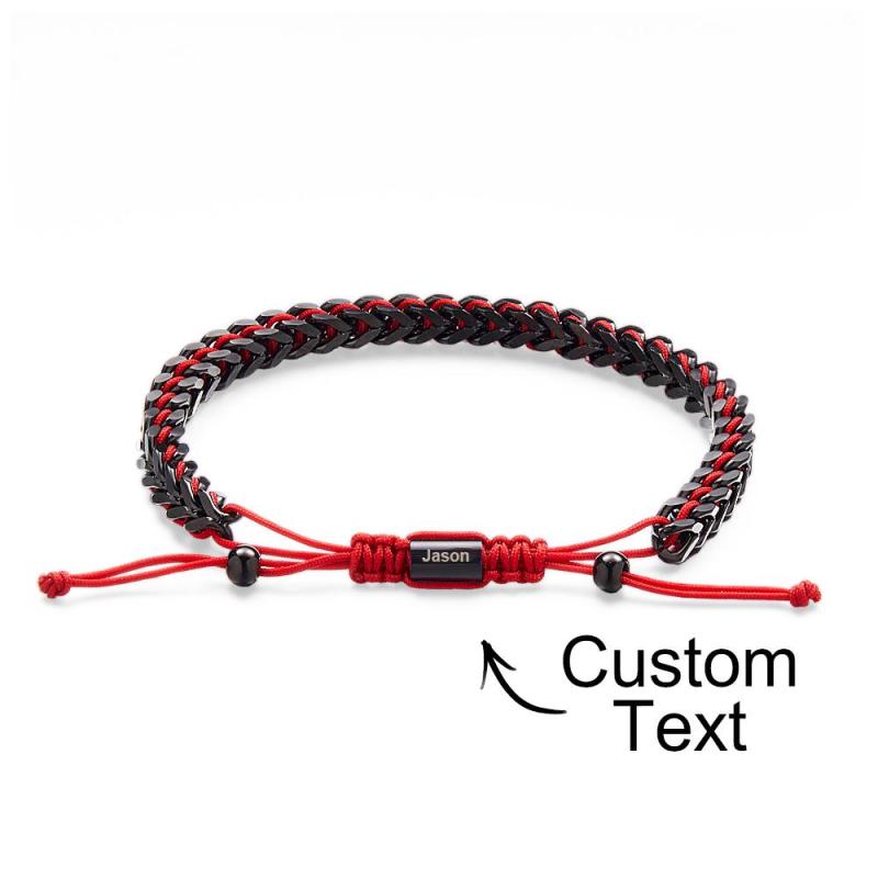 Pulseira Masculina De Corda De Metal, Tecido E Aço Inoxidável, Vermelho, Preto E Prata, Pulseira Personalizada Com Caixa De Texto
