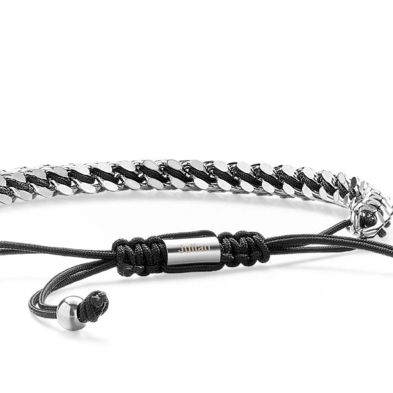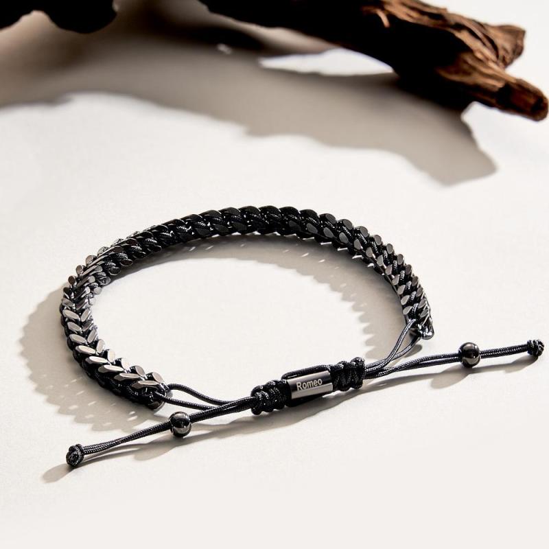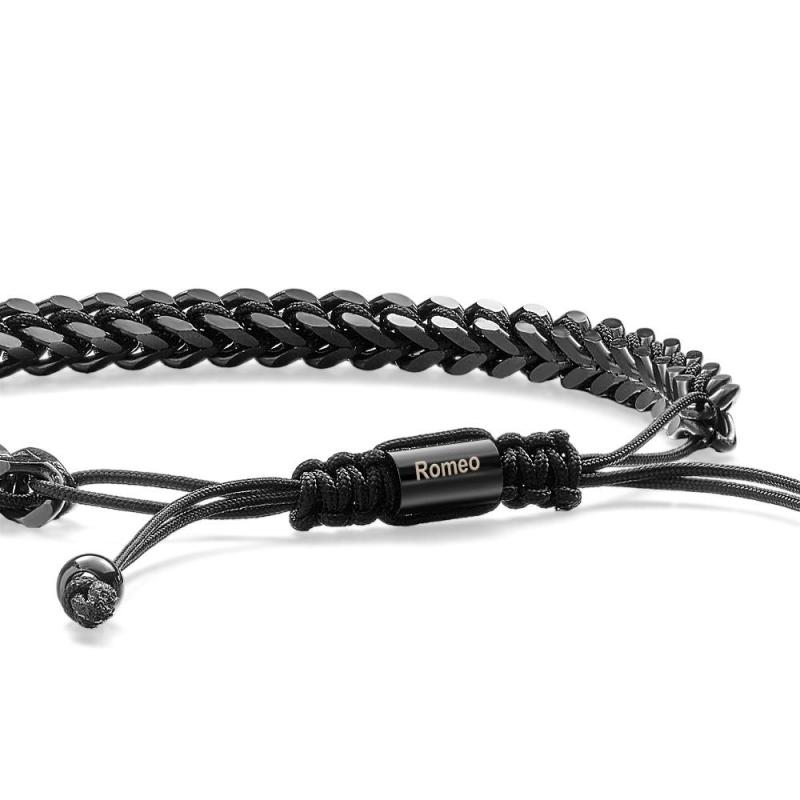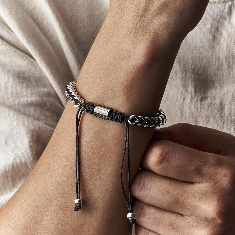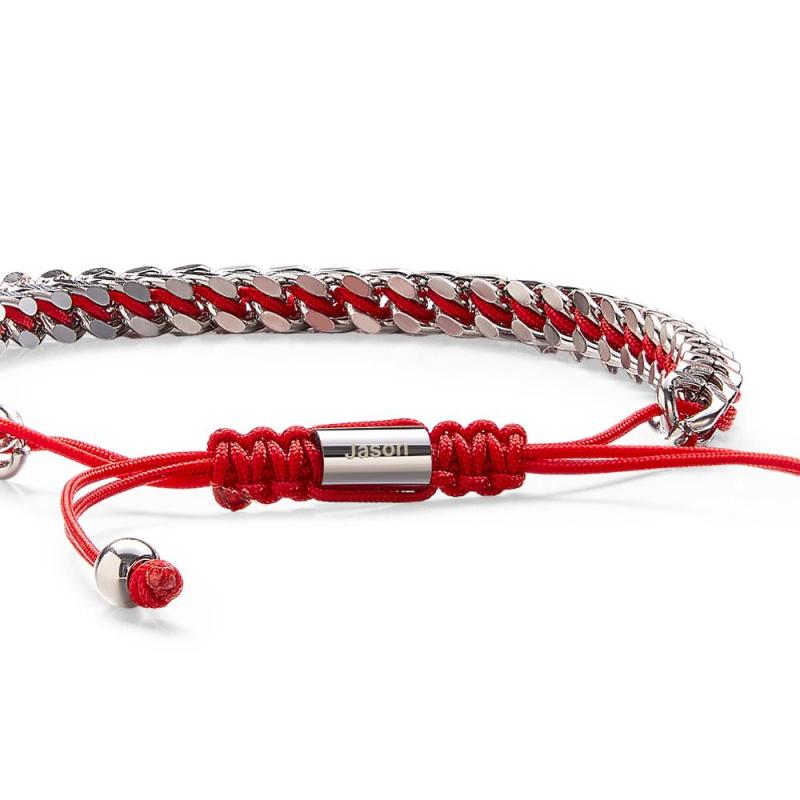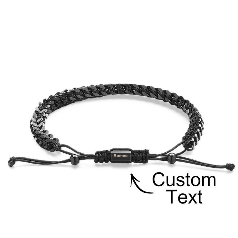 Pulseira Masculina De Corda De Metal, Tecido E Aço Inoxidável, Vermelho, Preto E Prata, Pulseira Personalizada Com Caixa De Texto