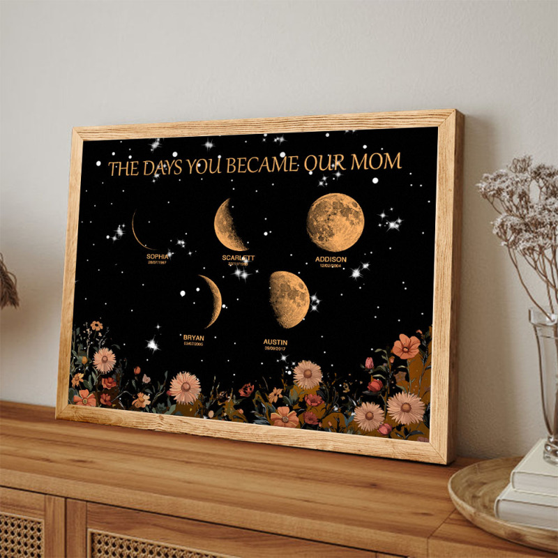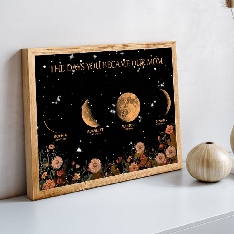 Presente De Dia Das Mães Com Fases Da Lua E Nomes Personalizados Em Moldura De Madeira Com Seu Texto