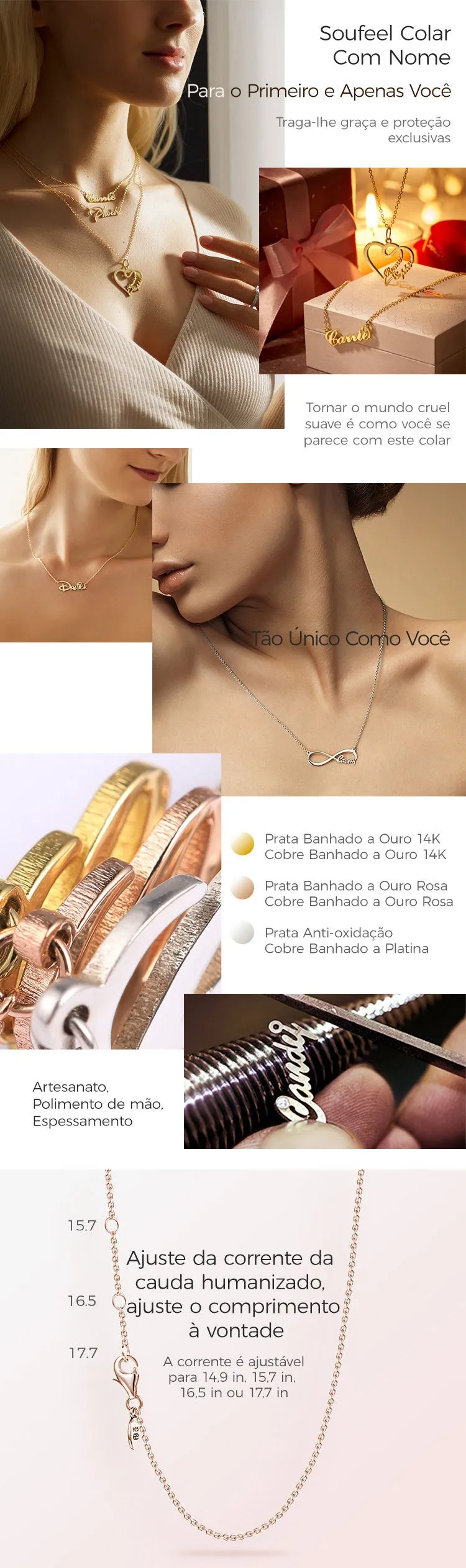 Colar de ouro Soufeel com nome estilo "Carrie" presentes para ela