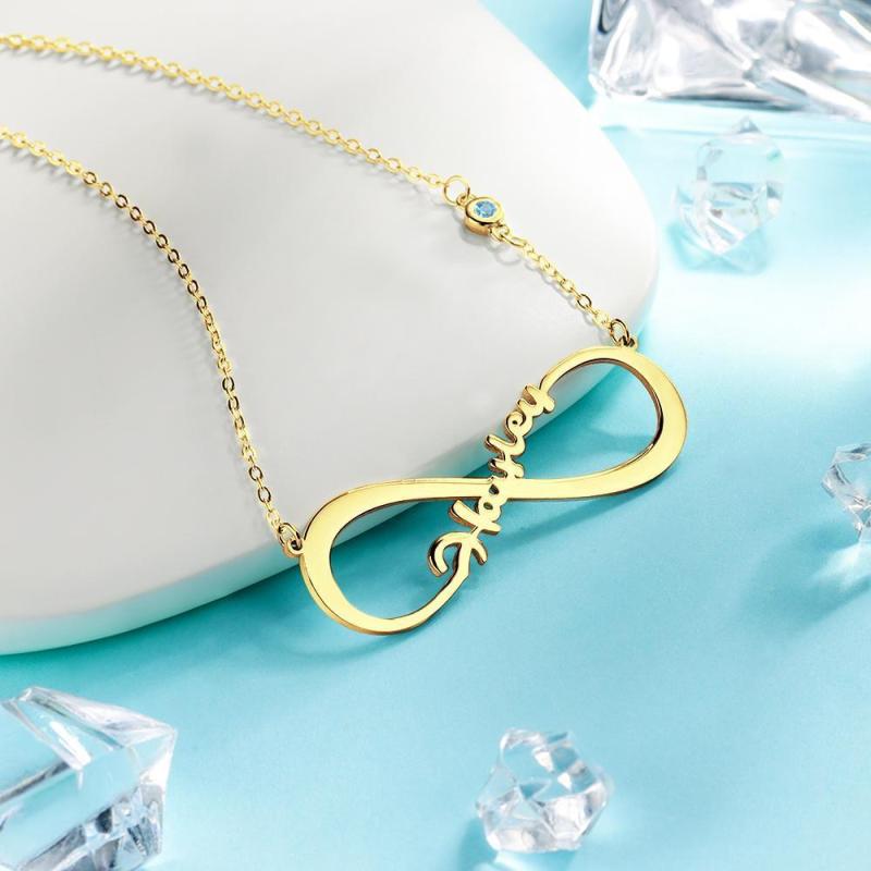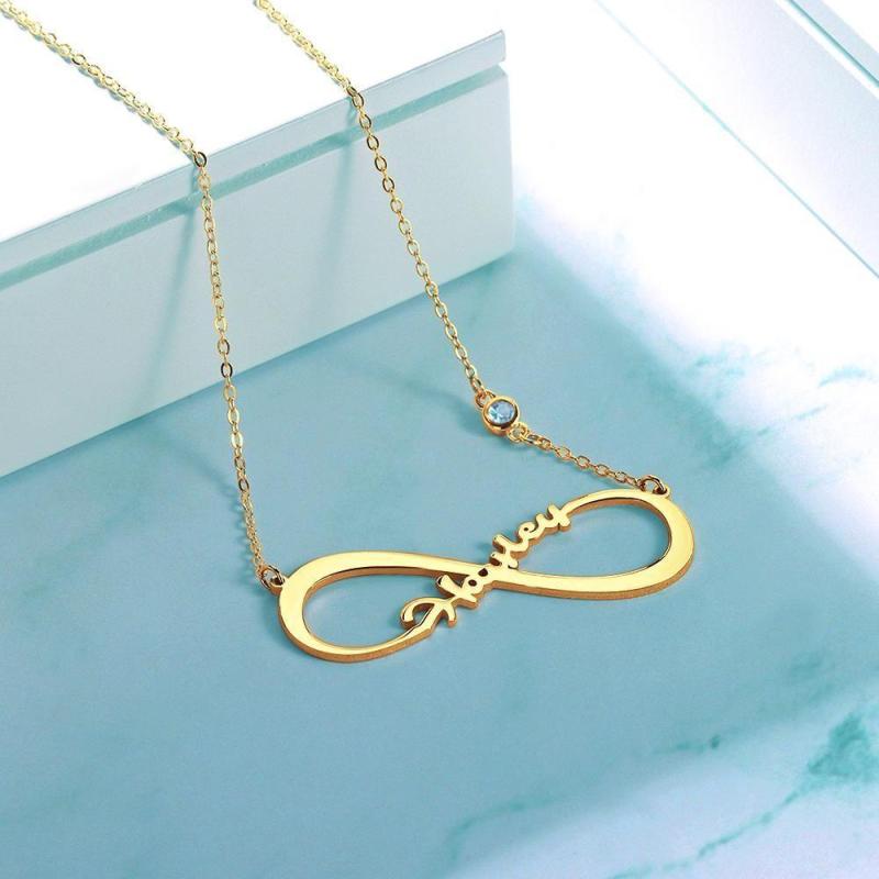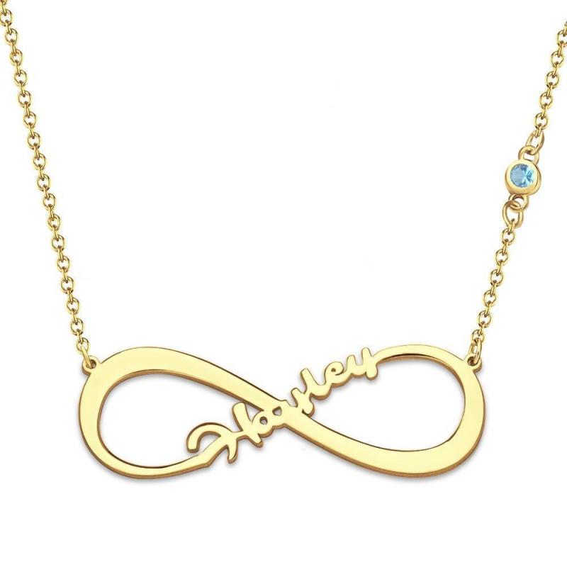 Colar com Nome com Pedra Zodiacal Colar Personalizado de Infinidade Presentes Únicos Banhado a Ouro 14k