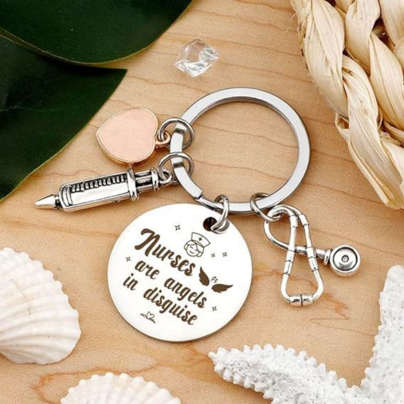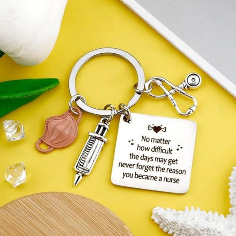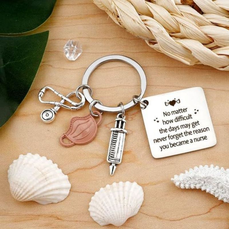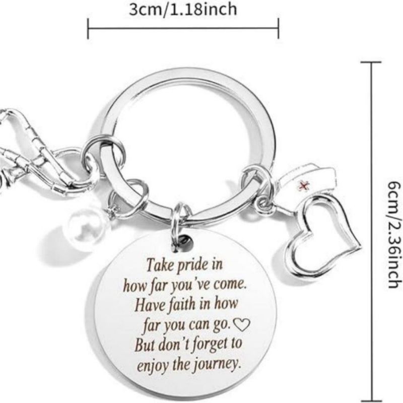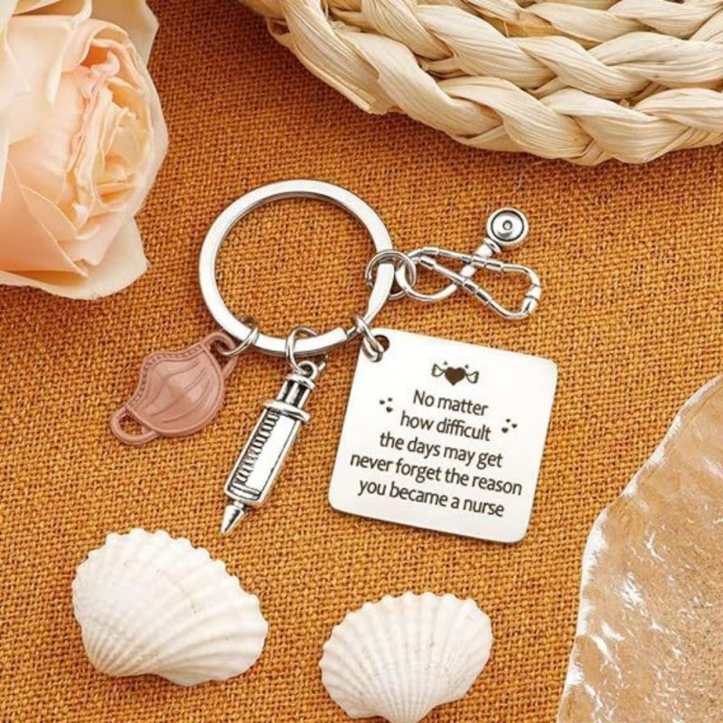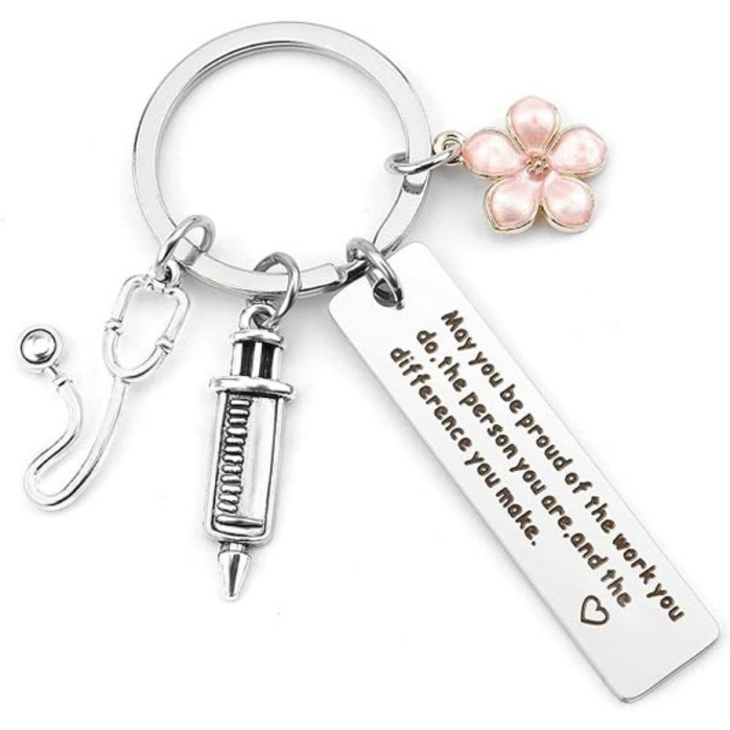 Tenha orgulho do seu trabalho, de quem você é e do impacto que causa. O chaveiro da enfermeira apresenta um design de estetoscópio e tubo de agulha, perfeito para mostrar apreço às enfermeiras. Ele pode ser usado como um acessório elegante em chaves, bolsas ou telefones. Este chaveiro de aço inoxidável é um presente atencioso para enfermeiras e profissionais de saúde, adequado para várias ocasiões. Seu material durável garante cor duradoura e sem reações alérgicas. Ótimo para aniversários, feriados ou como forma de agradecimento.
