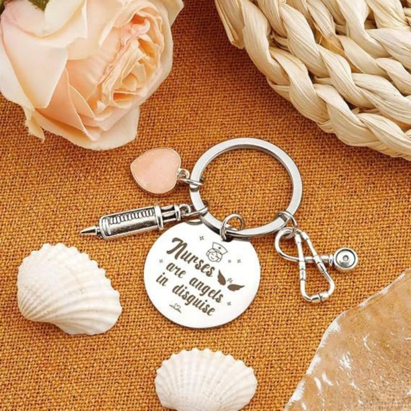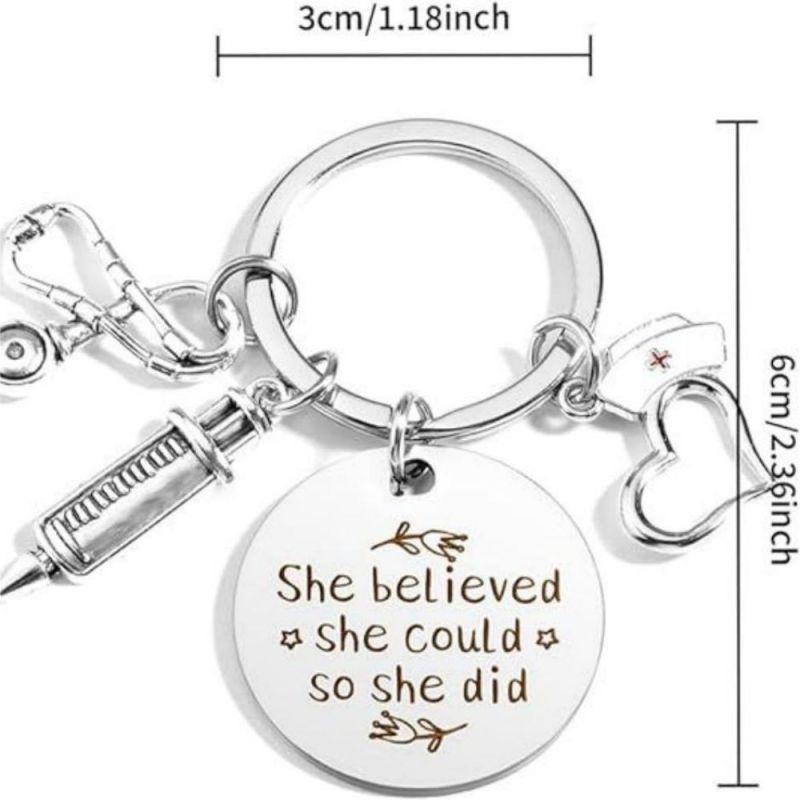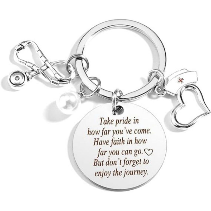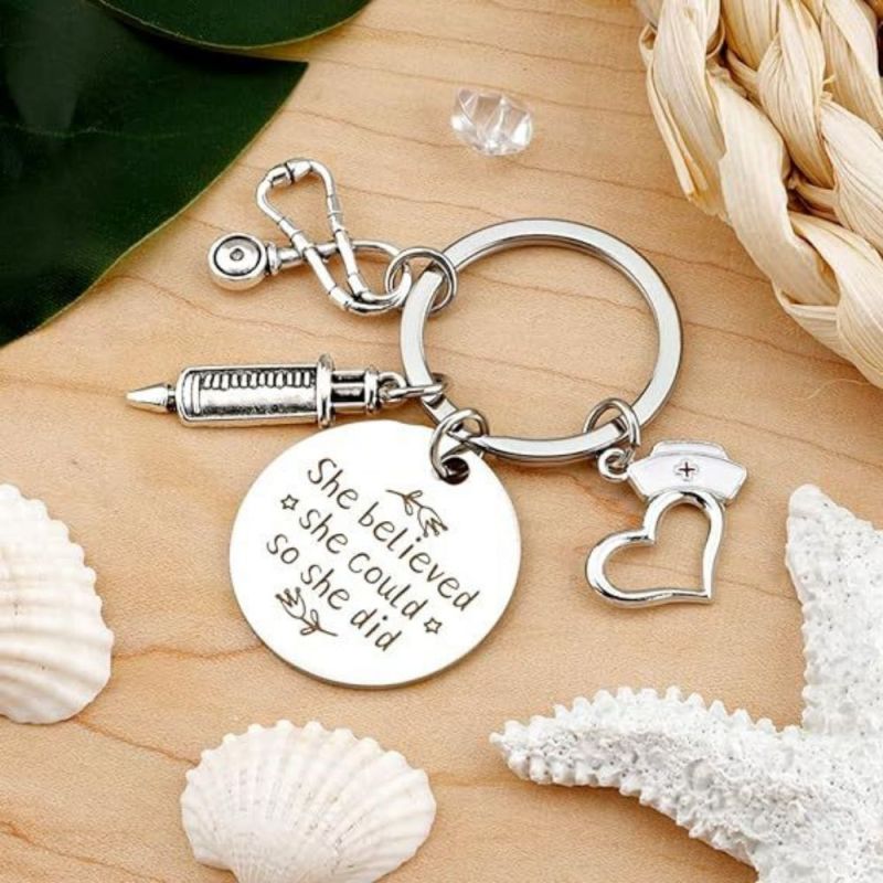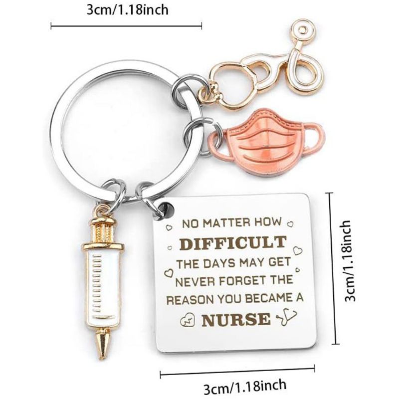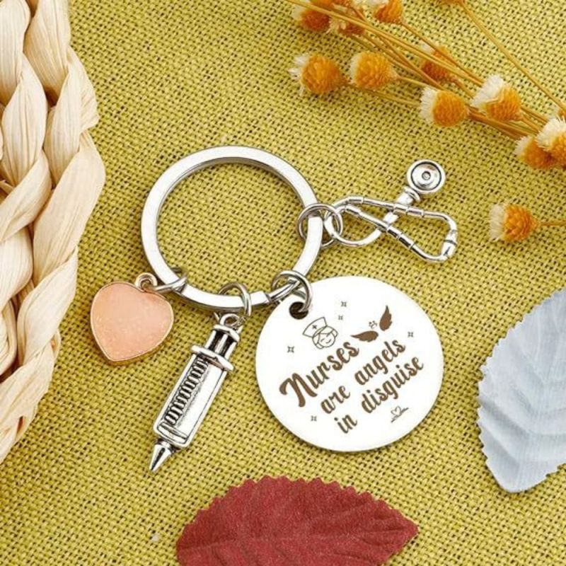 Tenha orgulho do seu trabalho, de quem você é e do impacto que causa. O chaveiro da enfermeira apresenta um design de estetoscópio e tubo de agulha, perfeito para mostrar apreço às enfermeiras. Ele pode ser usado como um acessório elegante em chaves, bolsas ou telefones. Este chaveiro de aço inoxidável é um presente atencioso para enfermeiras e profissionais de saúde, adequado para várias ocasiões. Seu material durável garante cor duradoura e sem reações alérgicas. Ótimo para aniversários, feriados ou como forma de agradecimento.