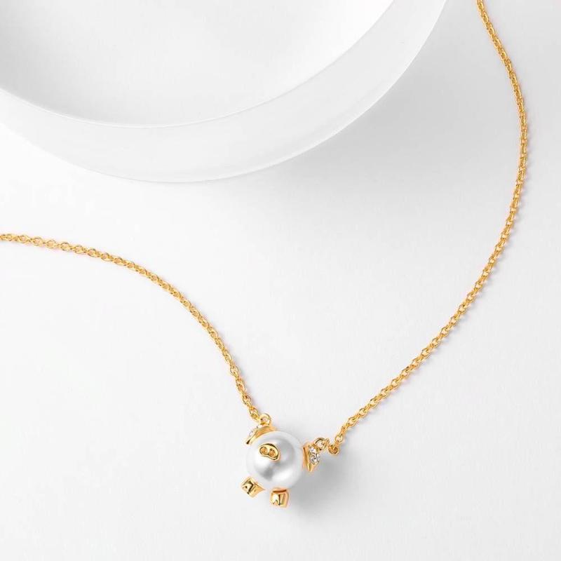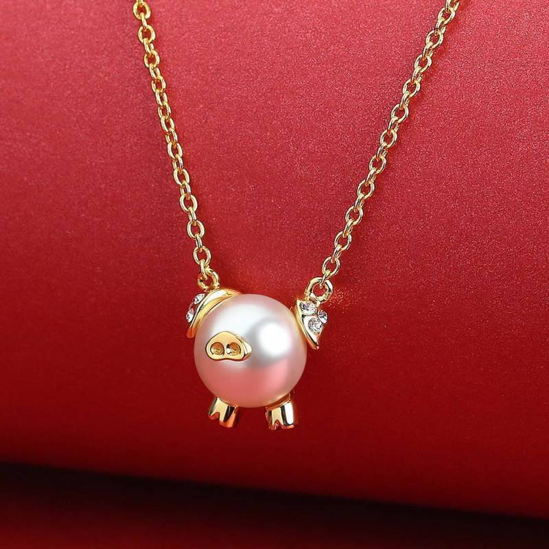Porco de Pérola Colar de Pingente Prata Banhado a Ouro 14k