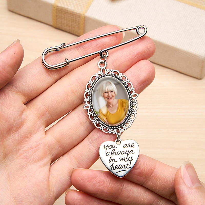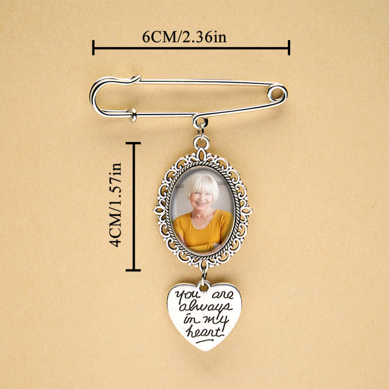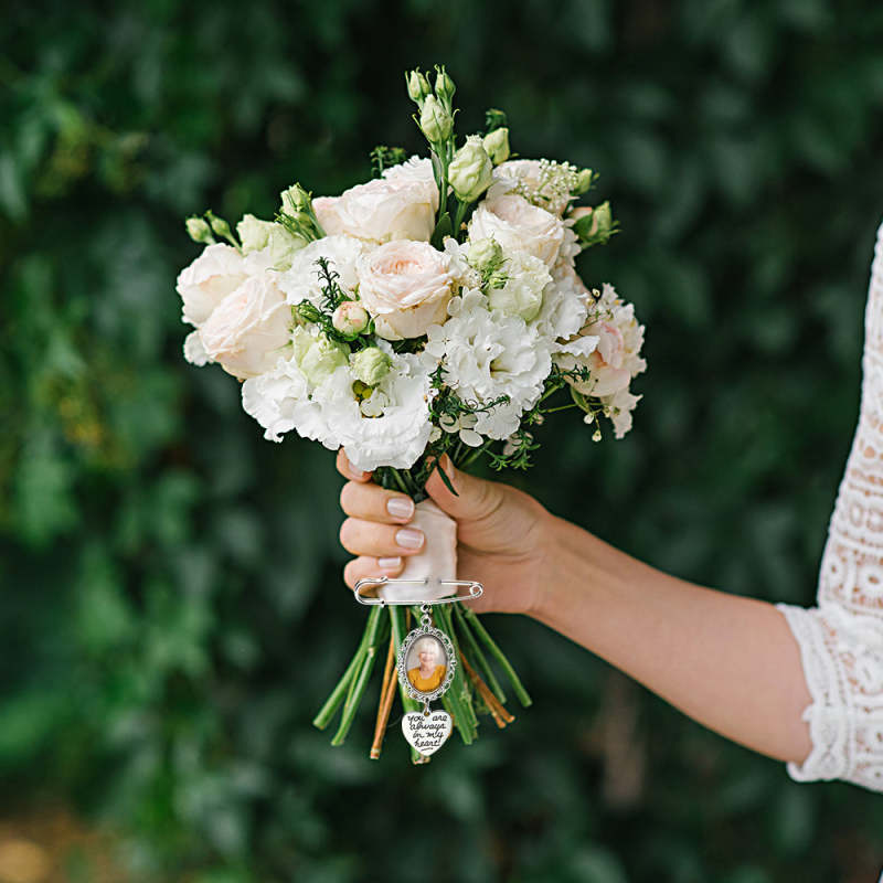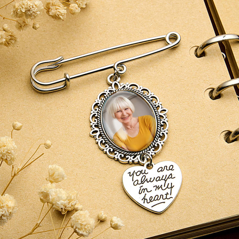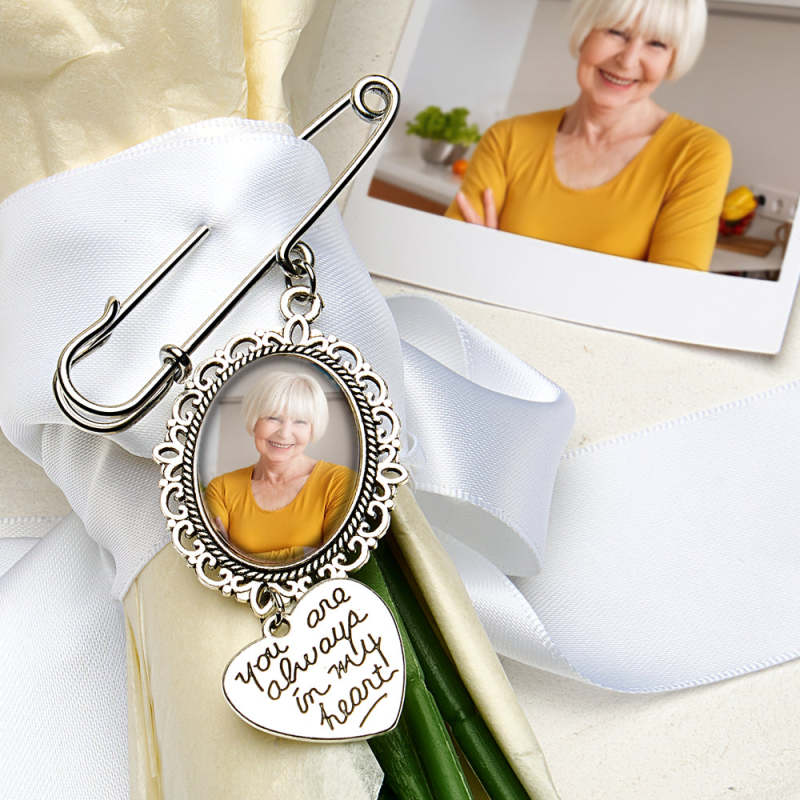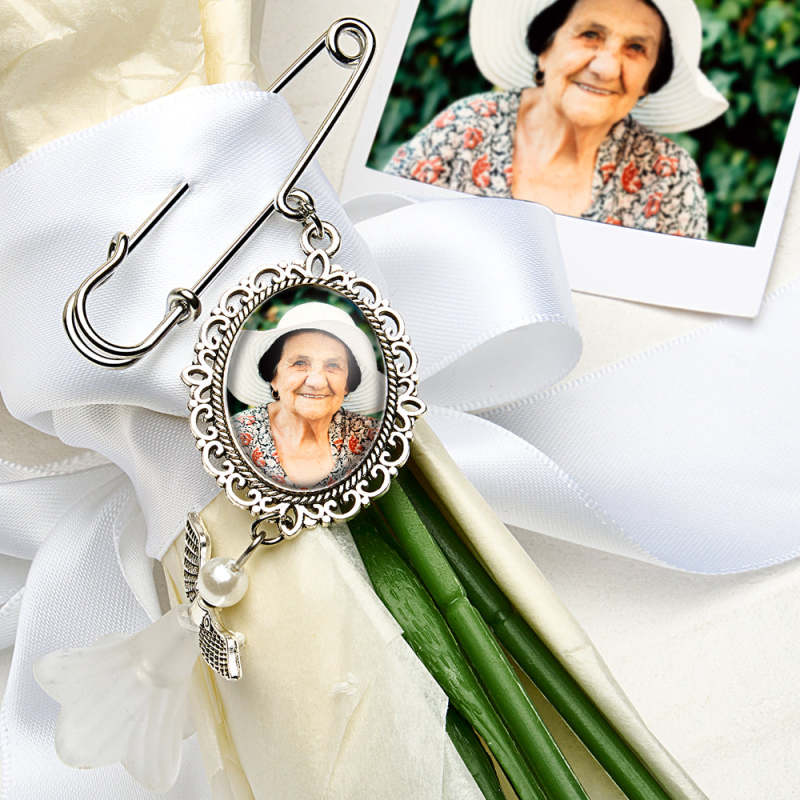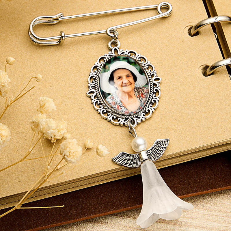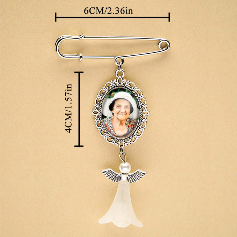 Este broche personalizado com asas de anjo é a maneira perfeita de adicionar um toque especial a um buquê de casamento ou servir como um presente memorial para uma noiva. Pode ser personalizado com uma foto, tornando-se um acessório sentimental e único. Uma adição atenciosa e sincera a qualquer casamento ou ocasião especial.
