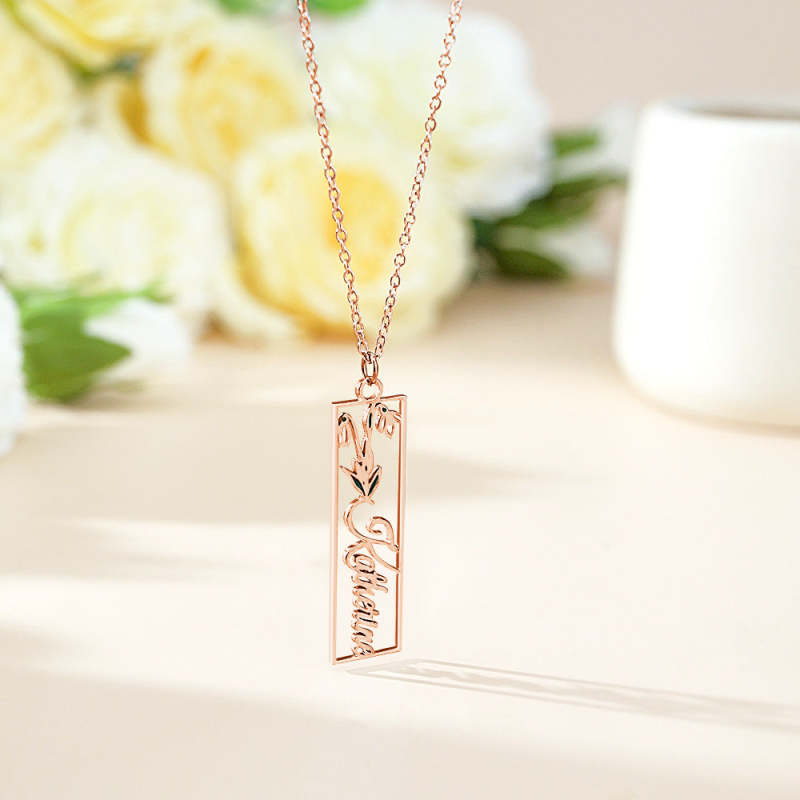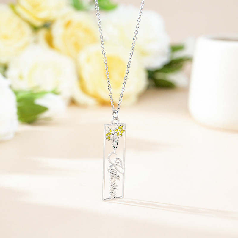 Apresentamos nosso colar com nome de flor de nascimento personalizado, o presente perfeito para qualquer mulher. Cada colar é personalizado com uma flor de nascimento exclusiva e um nome personalizado, tornando-o um presente atencioso e significativo para noivas, damas de honra ou qualquer pessoa especial em sua vida. Comemore sua individualidade com este colar lindo e personalizado.