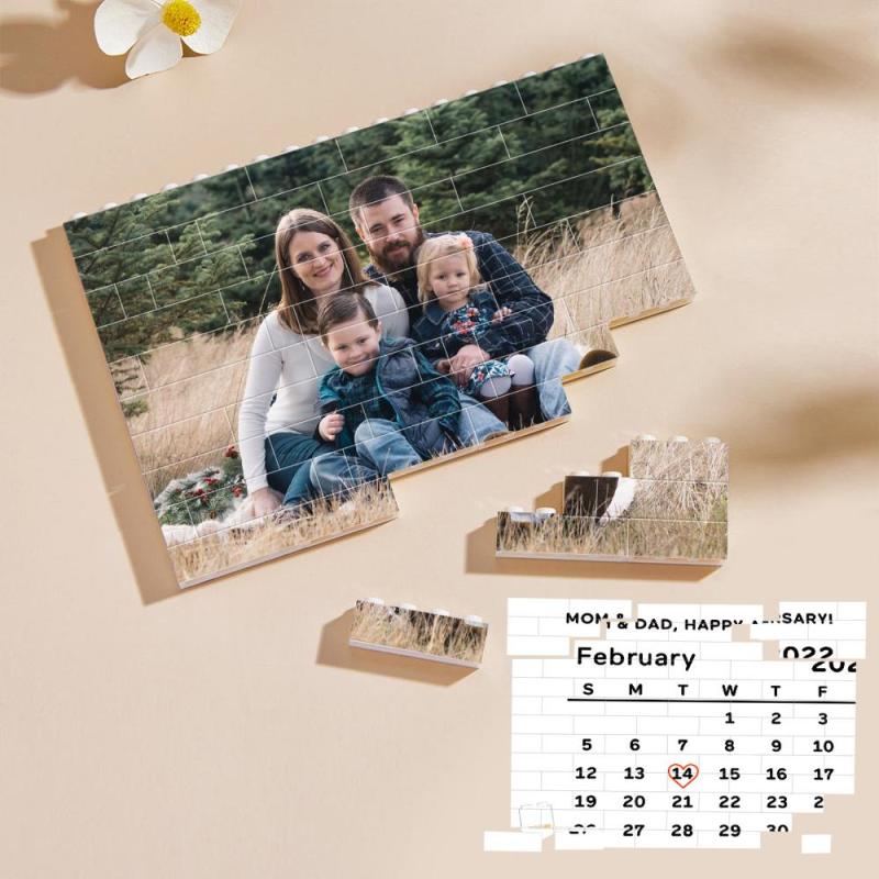 Bloco De Data E Foto Personalizado De Tijolos De Construção Para Presente Para A Família