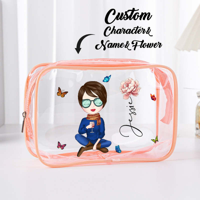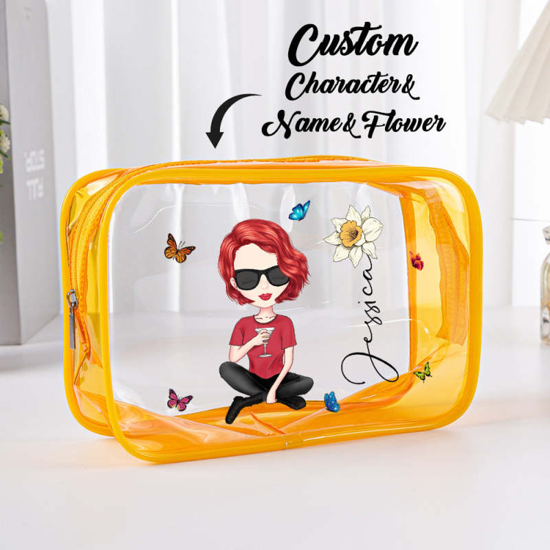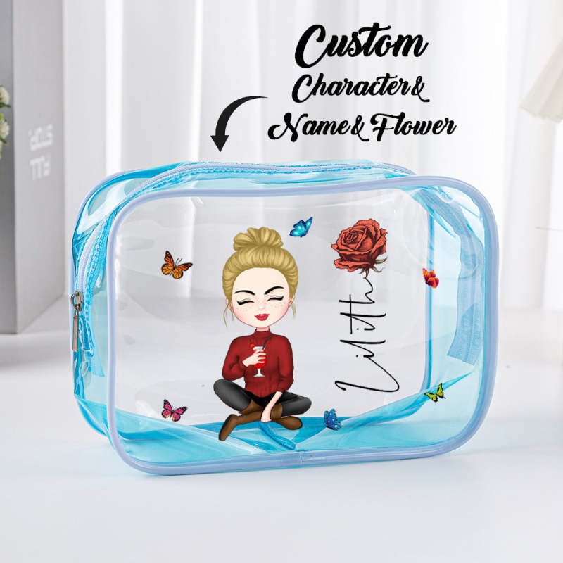 Bolsa De Maquiagem Transparente À Prova D'água Personalizada Com Flor De Nascimento De Menina Com Nome E Presente De Aniversário Para Ela
