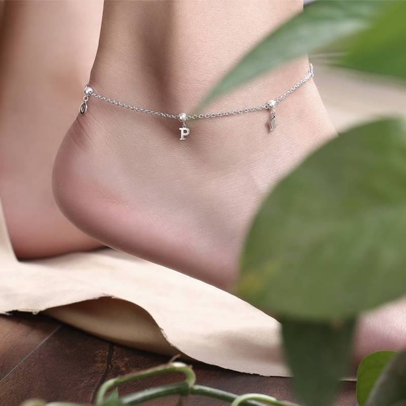 Tornozeleira com Nome Personalizado Balançado Prata de Lei