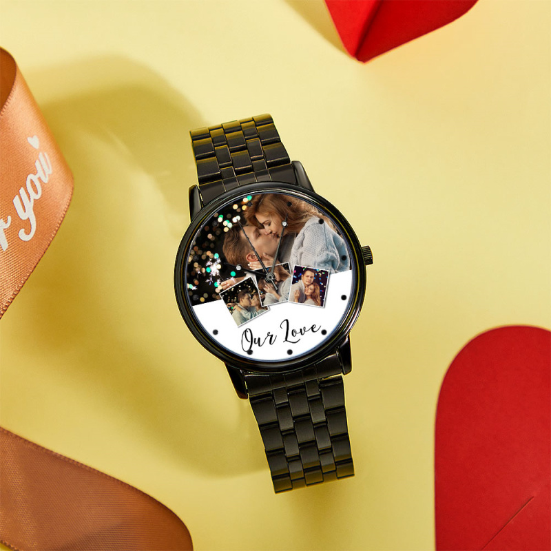 Relógio Fotográfico Personalizado E Gravado, Pulseira De Liga Preta Masculina, Relógio Fotográfico, Presentes De Dia Dos Namorados Para Namorado