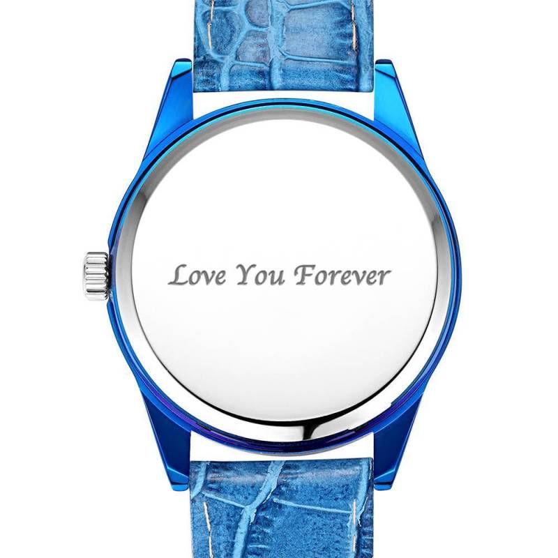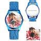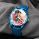 Relógio Gravável Personalizada, Relógio com Foto com Pulseira de Couro Azul Masculino - Presente para Namorado
